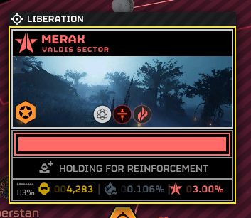 >be given the opportunity to raze Lesath by leaving behind our most powerful war asset, with vague reasoning, just to attempt to slow the player base's progress>most people decide not to do it because why the fuck would we raze a planet that we control and destroy the homes of voting citizens, only a small minority recognize it as a GM trap>Joel ends up throwing a Hulk Surge at the planet to completely reverse all progress on Aurora Bay and eat up time and reinforcements>by the time we finish defending it, Aurora Bay will be reset to zero and we'll have less than three days to liberate it>the MO will be lost by then, and Joel will just do the exact same thing at Chort Bay using the Incel Corps, because the player base voted the same way thereWords cannot express how much I fucking hate Joel. For all that AH keeps telling us "You're not allowed to criticize or hate other players for playing or voting differently from you" he sure as shit likes to punish the player base for not doing the super smart thing that only works if half the braindead fuckers don't foil the votes or go to the right planet. You cannot treat a player base of 100,000+ like a DnD table session, because more than 70% of the people just outright ignore the MOs or are too stupid to use deductive reasoning given such insufficient clues.