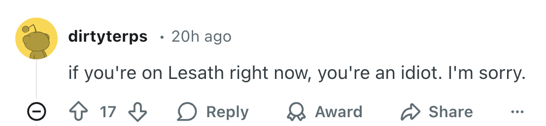 At this point would it better to just dive lesath?>>556592503The copium ran out