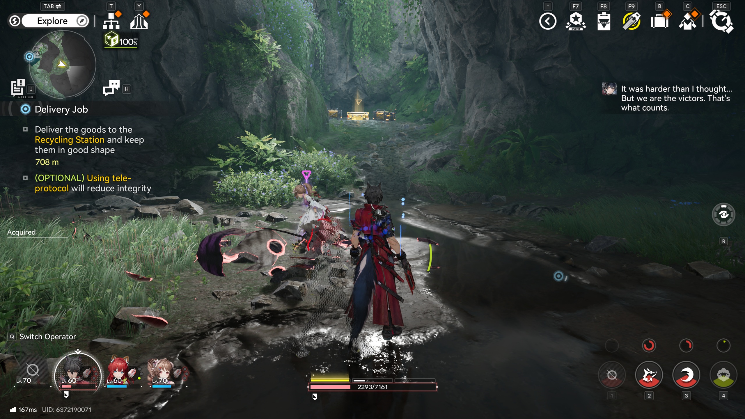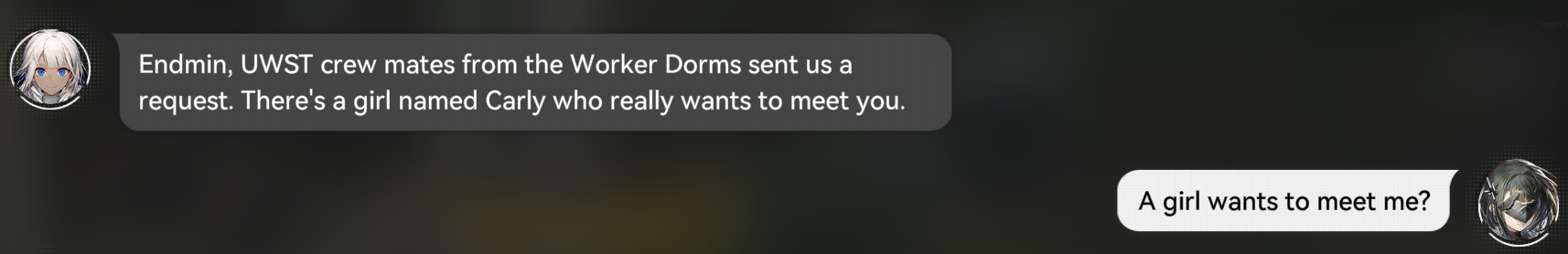 pretty mild character quest, i hope the stories improve at least a bit starting 1.1, both for characters and the main plot itselfthe interesting background lore is there, the factions are there, there's plenty of directions to take everything towards, so hopefully it's not going to just be "chasing le mysterious evil team with their mysterious big boss who want to do evil things" to appeal to the mainstream masses, especially since i honestly doubt even the mainstream masses like the current story