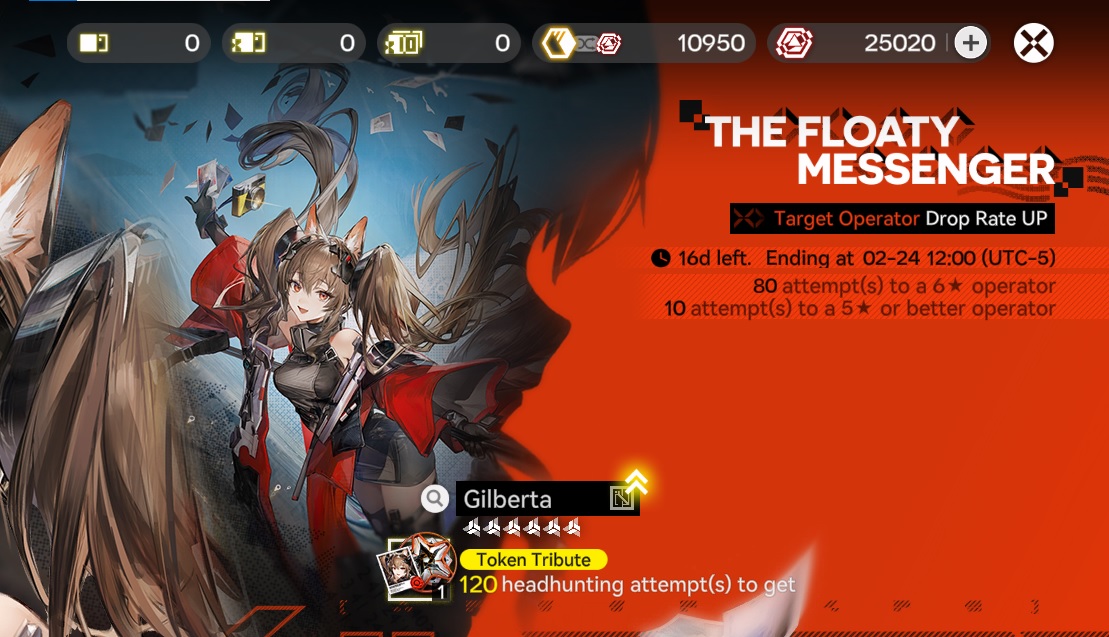 Previous thread: >>556608886>Gilberta Official Media (Current banner)https://www.youtube.com/watch?v=8hZVxeiSmQ4 - EP trailerhttps://www.youtube.com/watch?v=BQom1V9TdbM - Story trailerhttps://www.youtube.com/watch?v=h70w5ZmXLkE - Combat Demo>News / Dev CommsFebruary 4th - (Optimizations, balancing, and free standard 6* selector)https://endfield.gryphline.com/en-us/news/3846>Official Websitehttps://endfield.gryphline.com/en-us>Official EN X (NEWS HERE)https://x.com/AKEndfield>Chartered Headhunting ScheduleJanuary 21st to February 7th --- "Scars of the Forge", (Laevatain)February 7th to February 24th --- "The Floaty Messenger", (Gilberta)February 24th to March 13th --- "Hues of Passion", (Yvonne)>Reward CodesENDFIELDGIFTENDFIELD4PC>Twitch Dropshttps://endfield.gryphline.com/special/third-party-binding?channel=twitch>Voyage to the Stars (Ongoing until March 4th)https://endfield.gryphline.com/activity/voyage-to-the-stars/en-us/>Special Launch Streamhttps://www.youtube.com/watch?v=dz2g_D52NR0 >Official Release Trailerhttps://www.youtube.com/watch?v=oJ00ggFb8A0 >Official Release PV'shttps://www.youtube.com/watch?v=5Xm45NwWOlo https://www.youtube.com/watch?v=UPpeeft1-8o https://www.youtube.com/watch?v=tN80M6IEMo0 >Wikishttps://wiki.skport.com/endfield (Official)https://perlica.moehttps://warfarin.wiki/enhttps://endfield.wiki.gg/>Blueprint Guideshttps://talospioneers.com/en>Stickershttps://drive.google.com/drive/folders/13KH3L6QPIKkVH7pBddv4uxwmwJsnOtklhttps://drive.google.com/drive/folders/1OuVtjv1k-9c3M6n7d4PX3CGG5bkwH04ahttps://drive.google.com/drive/folders/1AStB8bzFk3lSwMwczWPkFYCBrZe0vHOghttps://drive.google.com/drive/folders/1yS0lqUhxf8tBRtpDFfCU1y16IS2sSeF7>Fr/end/sSubmit your info, /end/min:https://forms.gle/Fo7BhZMKaKqiWyL19View other /end/mins:https://docs.google.com/spreadsheets/d/1YtxiDss0hgEQhLlZgpfzyGrJrzUcqDzOS9T6IH-BiVc/edit?usp=sharing