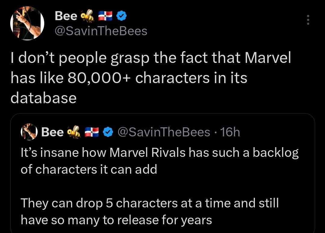 >>556625927Overwatch getting a big update and 5 heroes, plus Deadlock getting a bigger update with 6 heroes is a little more hype than a literal who with Elsa in MR and a very stale balance and game. Apart from Deadpool and a new imbalanced map, there was nothing else going on. Poke, Gambit and Invis still reign supreme and nothing changed with the balance patch.