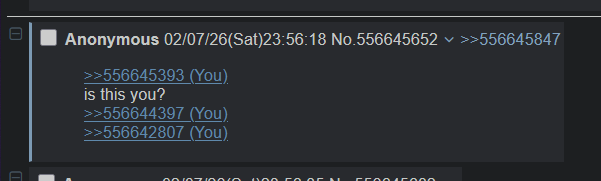 >>556640680(You).>>556640709Today, I learnt I shitpost someone I never met and I barely know