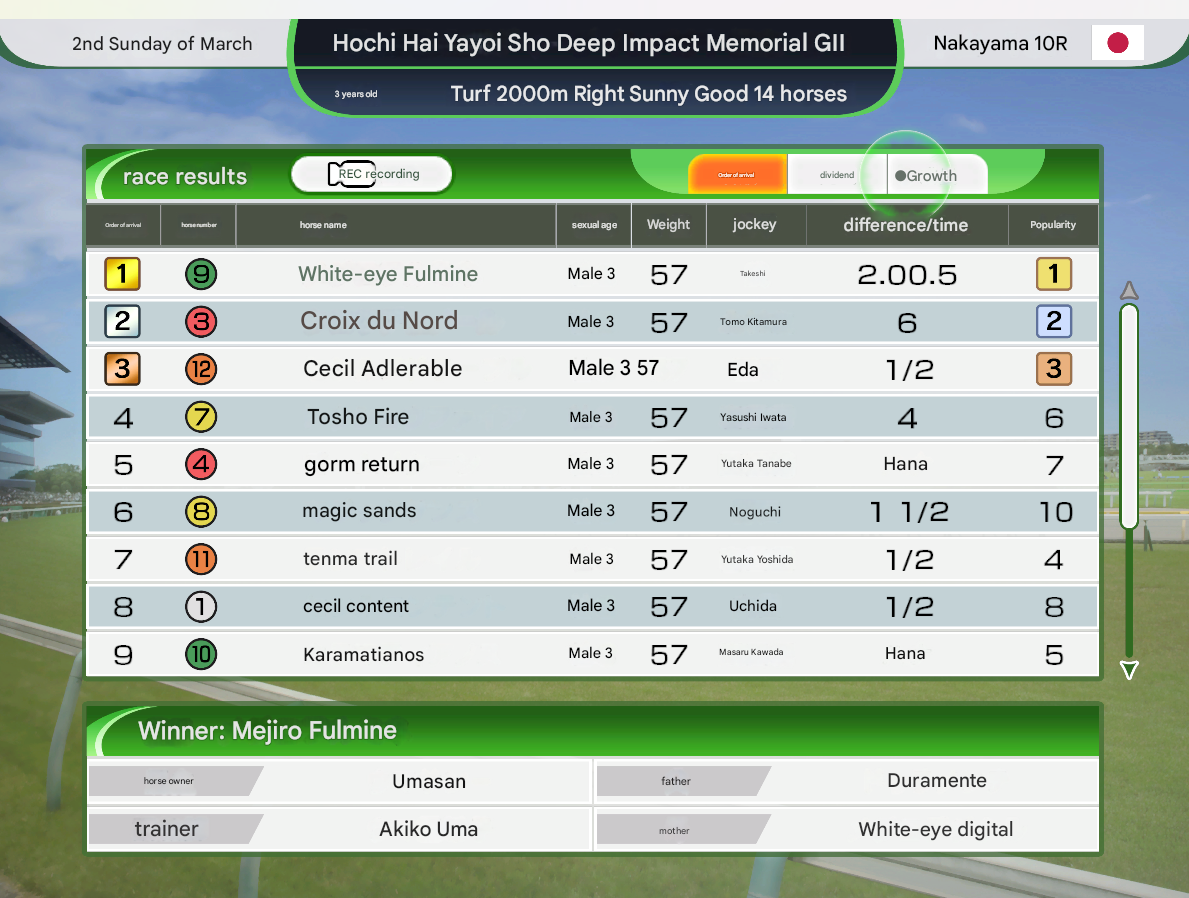 >Croix du Nord lost to son of Duramente and grandson of Mejiro Dober