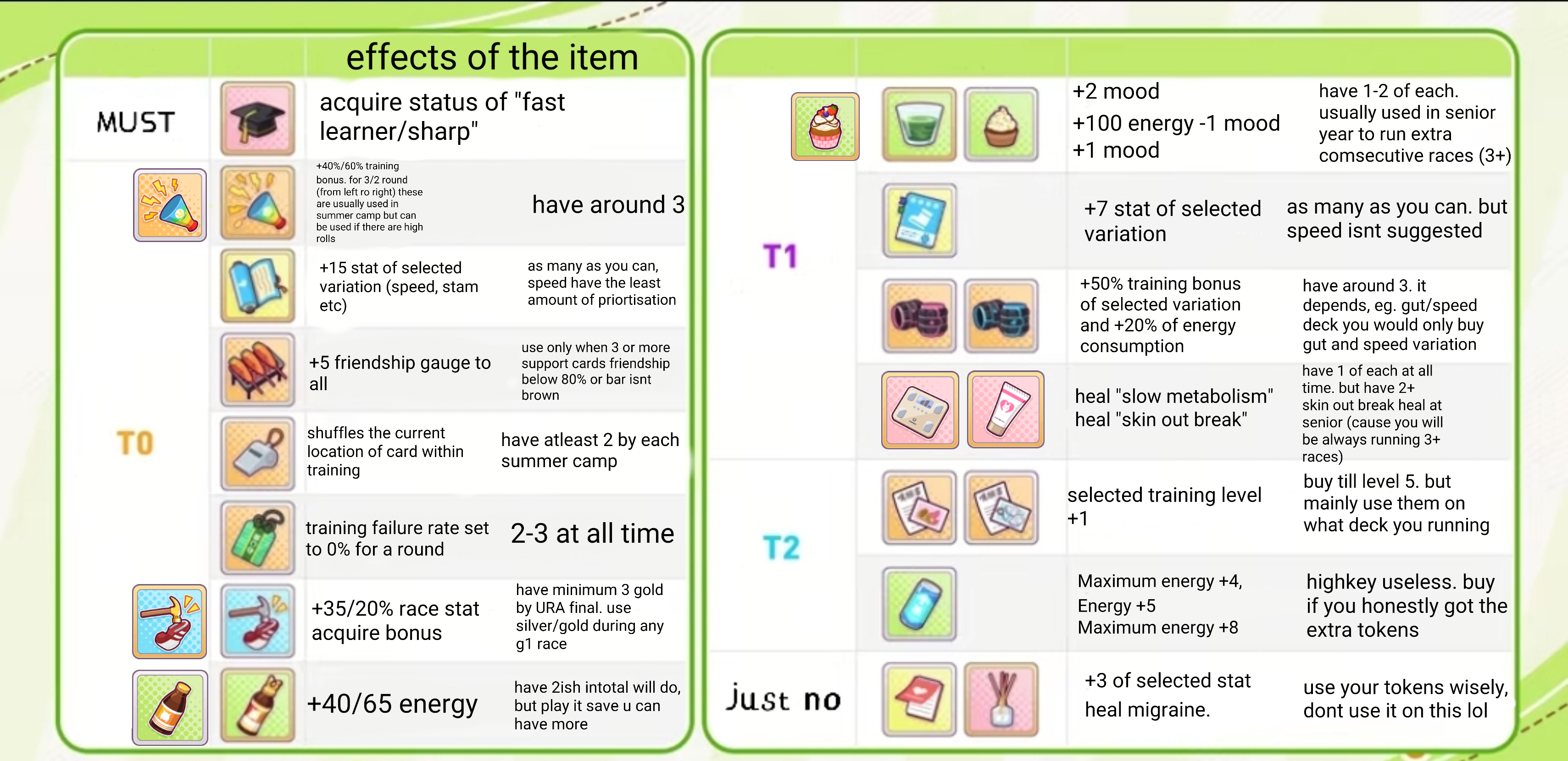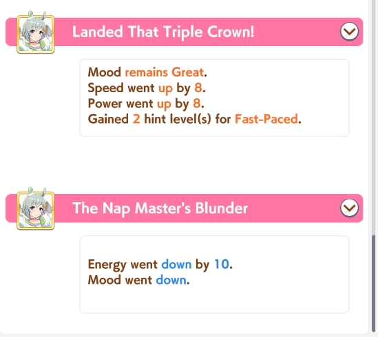 >>556665196climax is really simple once you do it more than 5 times >copy a racing path>buy carrot bbqs to increase friendship gauge>buy facility increases like guts, wit, or stamina if you are building for long>stack on energy recoveries, whistles, debuff removers (split hoof is really important), mood ups, and weights to go all in during summer>buy stat up items with spare points if there was no buff like fast learner after shop resetand that's pretty much it, there's other items like megaphones (increased stats gained from races) and penlights (increased fan amount) but those are only saved for finals