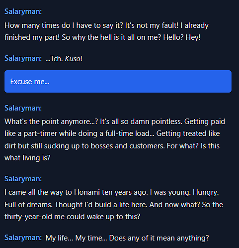 >rewatching a playthrough of 3.1 story on youtube