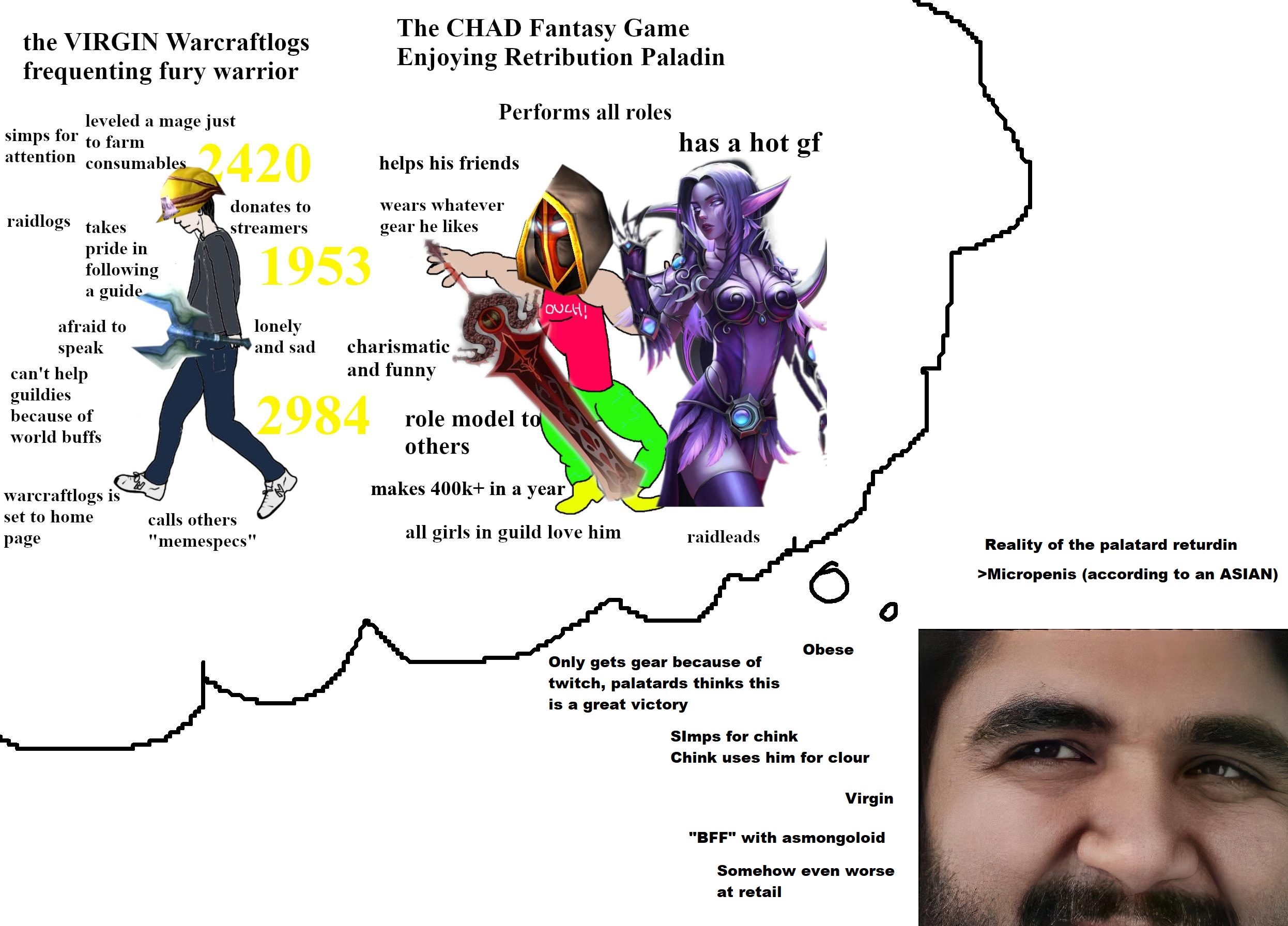 >>556876027>even though it peaked in the middle of wotlk, its because of vanilla and tbci dont even like wotlk personally but to claim its objectively bad is just pure copium