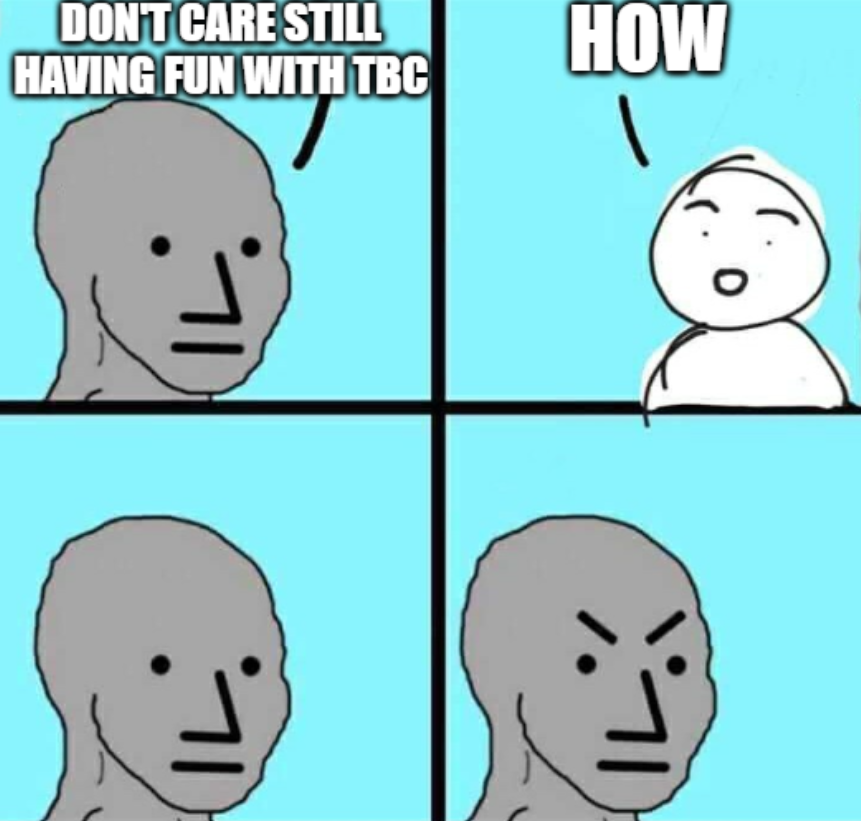 Yeah, TBC minmaxing is really killing my desire to play. Post nerf content and a 1 year cadence on top...