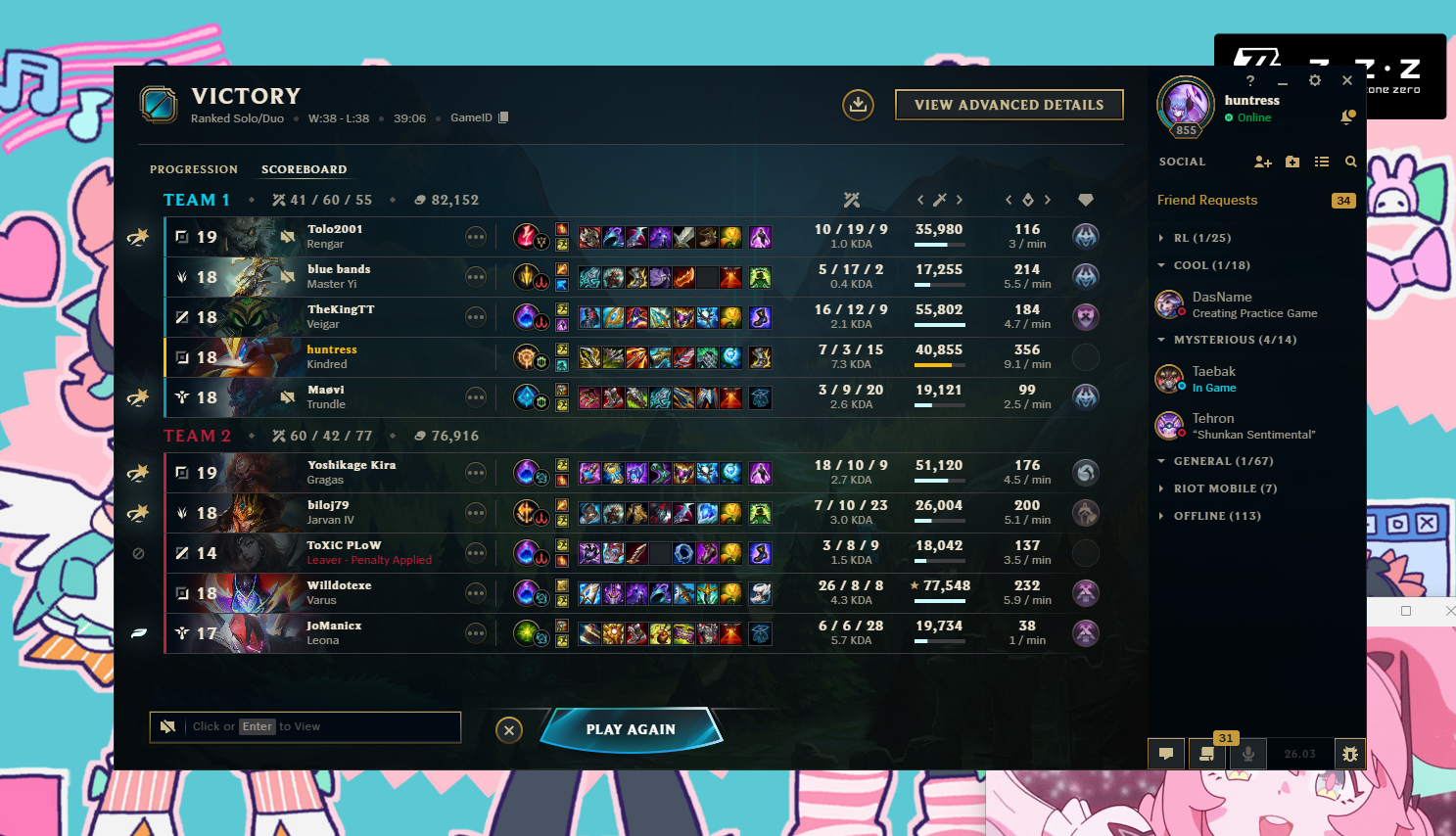 funny thing is that anons from /lolg/ actually convinced me to play ranked again (inactive for a whole year)i come back to webm relatedthis is DIAMOND MMRTHERES SOMETHING REALLY FUCKED UP WITH THE GAME RIGHT NOWthe skill difference between people is so astronomically large, i cannot even fathom how the FUCK they managed to do this