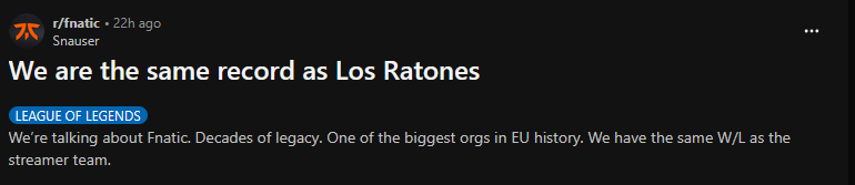 >>556728241Fnatic's league department should unironically merge with LR.