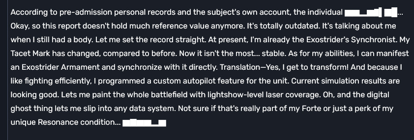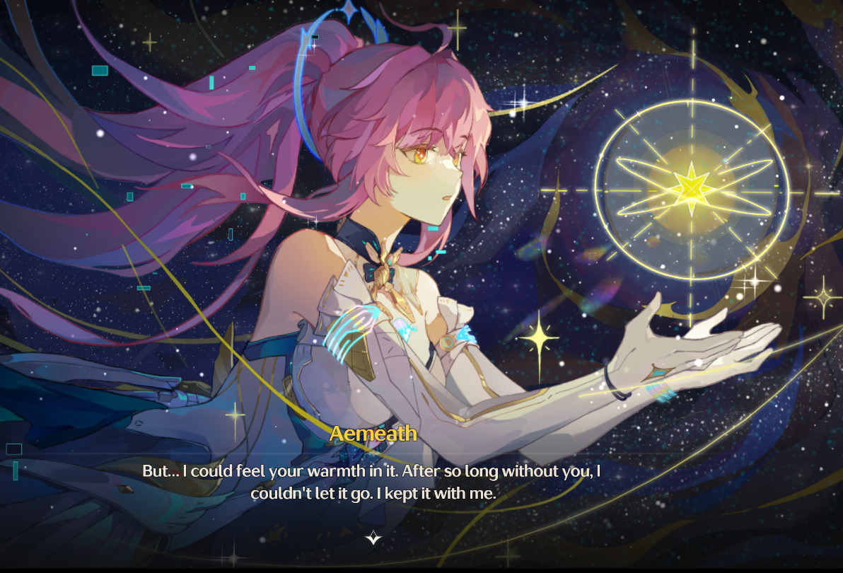 I know some people think we're gonna put Aemeath's ghost into this new meat body but I don't see that happening, because her gameplay wouldn't work if she became flesh and blood again. It's literally baked into her gameplay animations that she's a digital ghost possessing a machine, how would it work if she became alive again? She even says she'll "always be a ghost in a machine" at the end even after her frequences were restored. So I'm not sure what they intend to do with this meatbag Aemeath then.