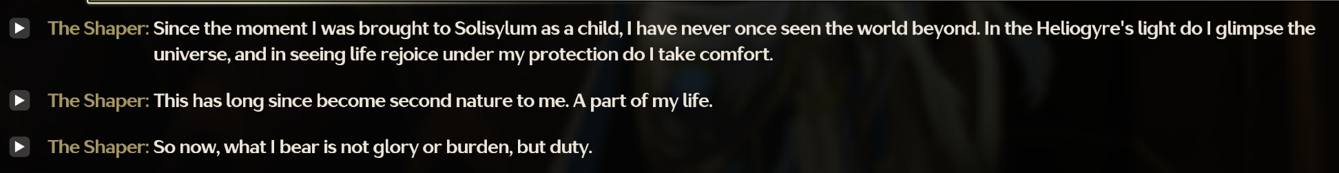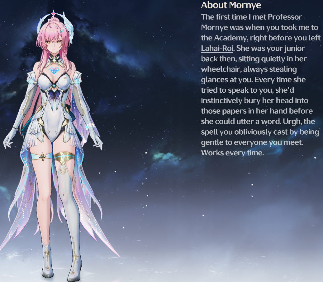 >Hey man have you heard about this place called lahai-roi?>What about it?>It's this land in the north that recently became unhabitable frozen hellhole, and it also has its own theonodian but no sentinel, also it's a place that's affected by phenomena called void storm that are sudden and if you are affected by it your whole existence gets erased like your body gets eaten and everyone instanly forgets about you, sounds like hell, doesn't it?>I guess so>Anyway, the only reason it isn't much worse is that scientists here have this ancient robot that keeps it somewhat in check, they even tried to activate it for 100 year to no avail, and they even built a school there wanna send our kids there?>OH MAN I'M IN
