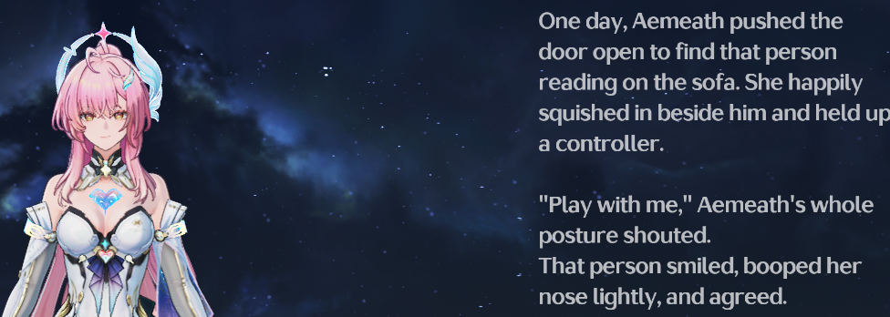 So if i understand correctly. Right now there'll be someone that need to control exostrider in lahairoi to go save aemeath? Is this exo are the same unit that aemeath seals aleph1 but somehow it drop on solaris (aemeath still in the space with blackhole )
