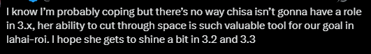 >All this storytelling and crazy lore drops in 3.1 >Lots of build up for Aemeath >All this just for her to get completely side-lined and forgotten once she is saved. Just like cheesa