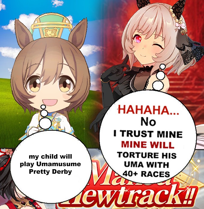 you can't tell me king halo's career isn't just bad game designi get her career is about her racing in all the wrong distance races to try and get her mother to stop hating her but least they could've done is give her +10% speed bonus (especially considering she's a sprinter at core)