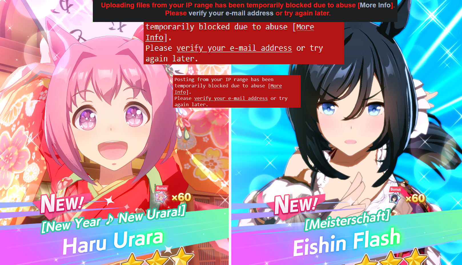 >>556722402>>5567223924chans verification/ban system is INSNAELY busted and retarded, so don't think too much about it, just be happy you can post period.in case you never had this, the system sometimes throws random warnings at you for things you literally never posted, or things from MONTHS back.plenty of silly bullshit like this can and will happen.