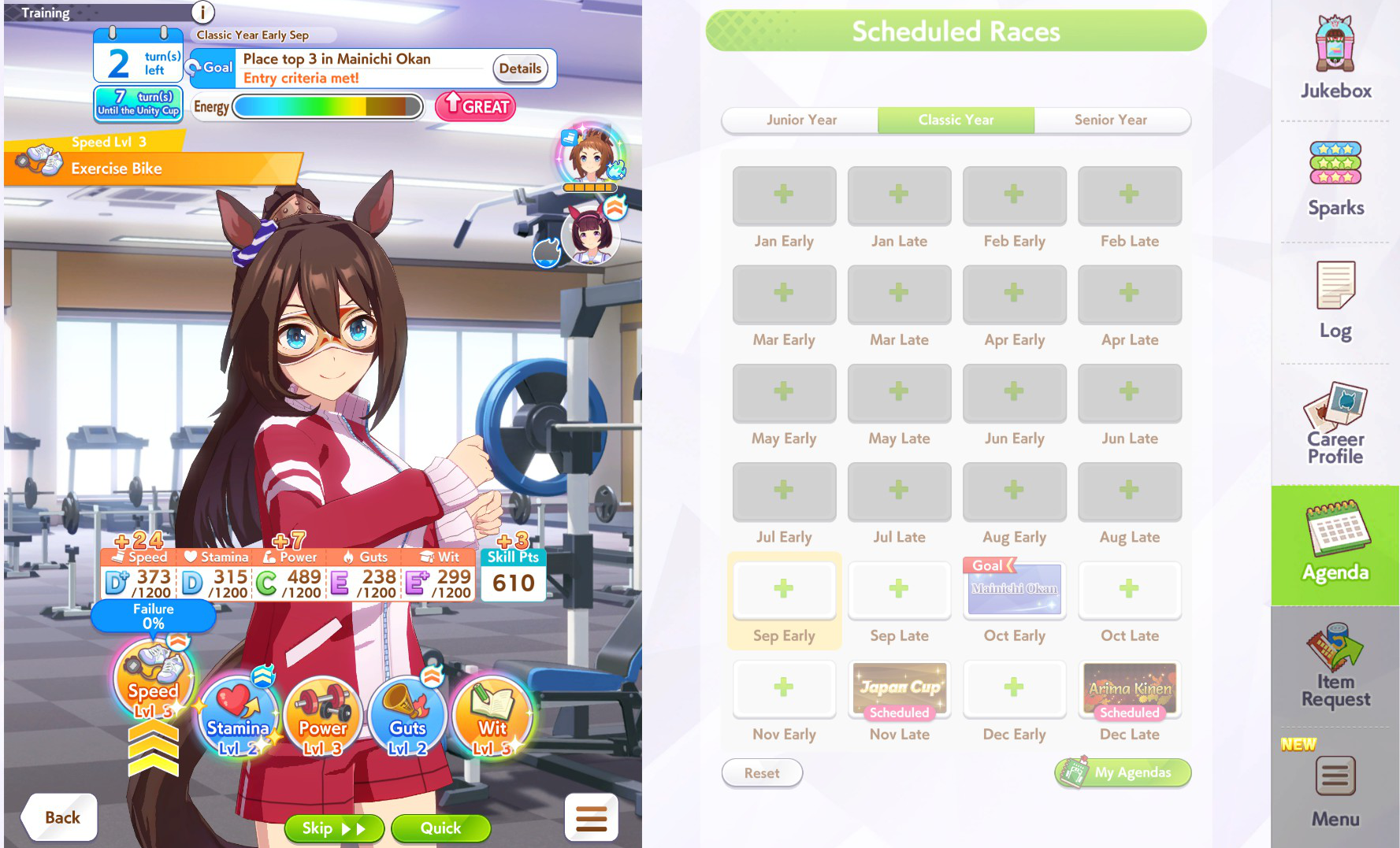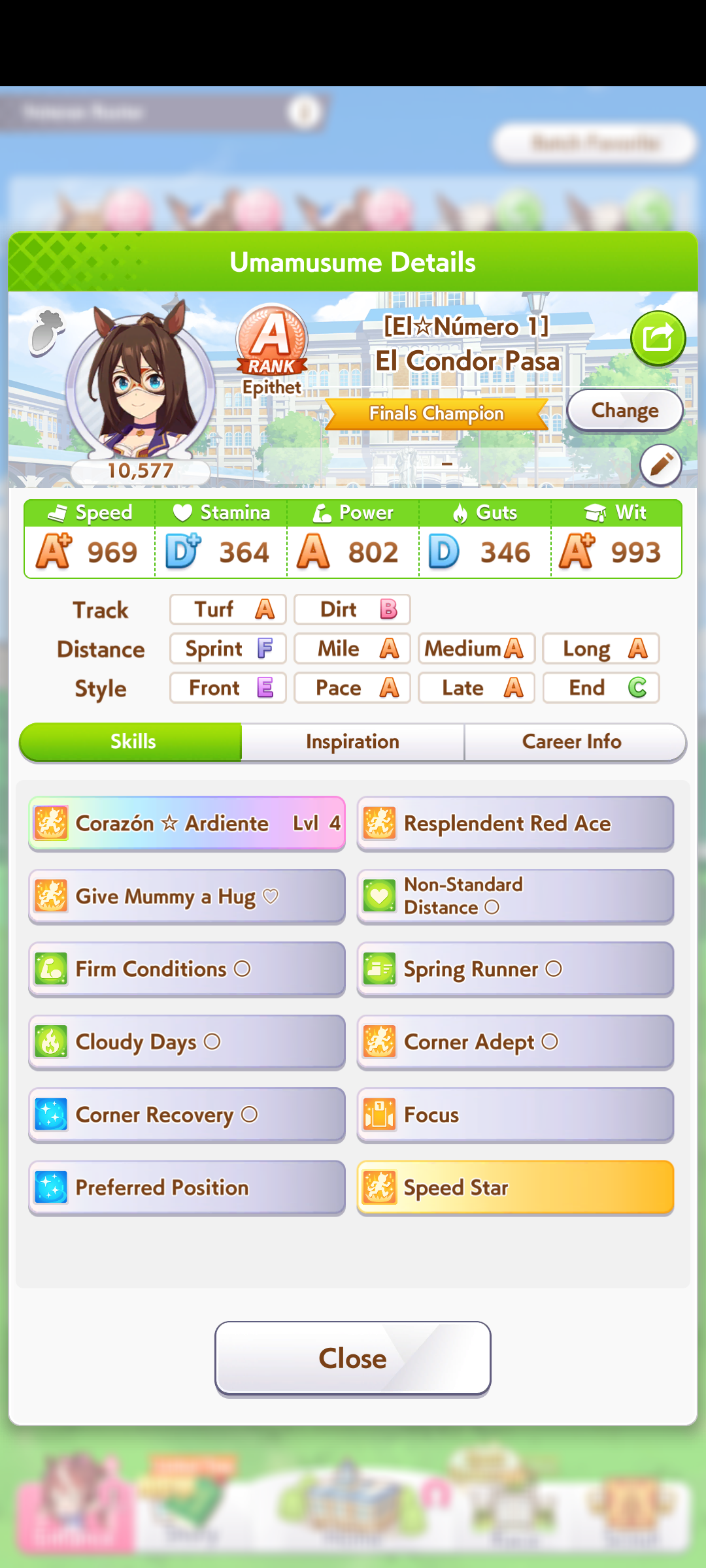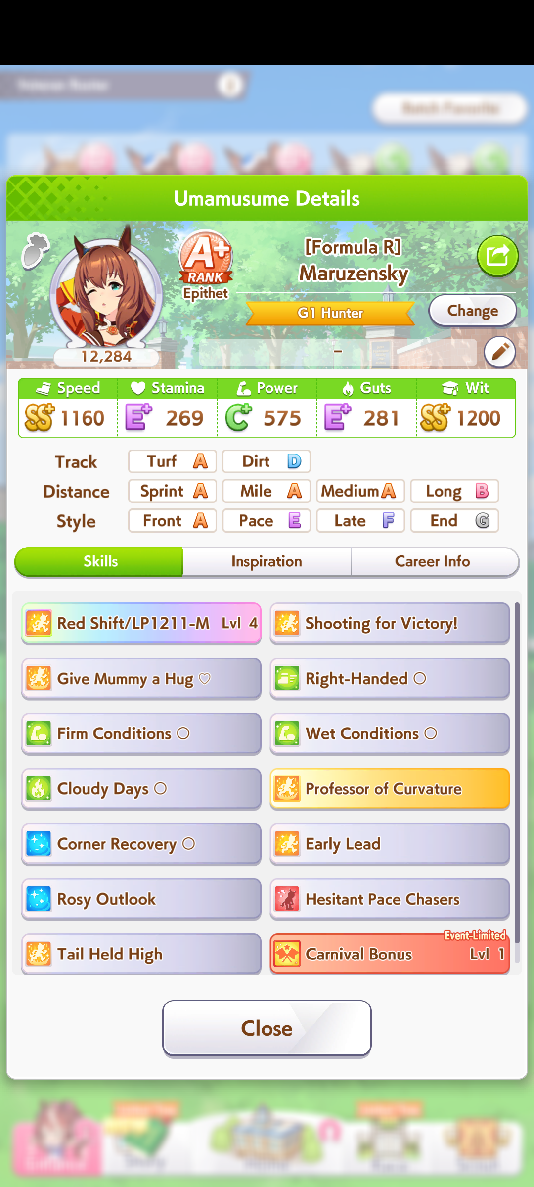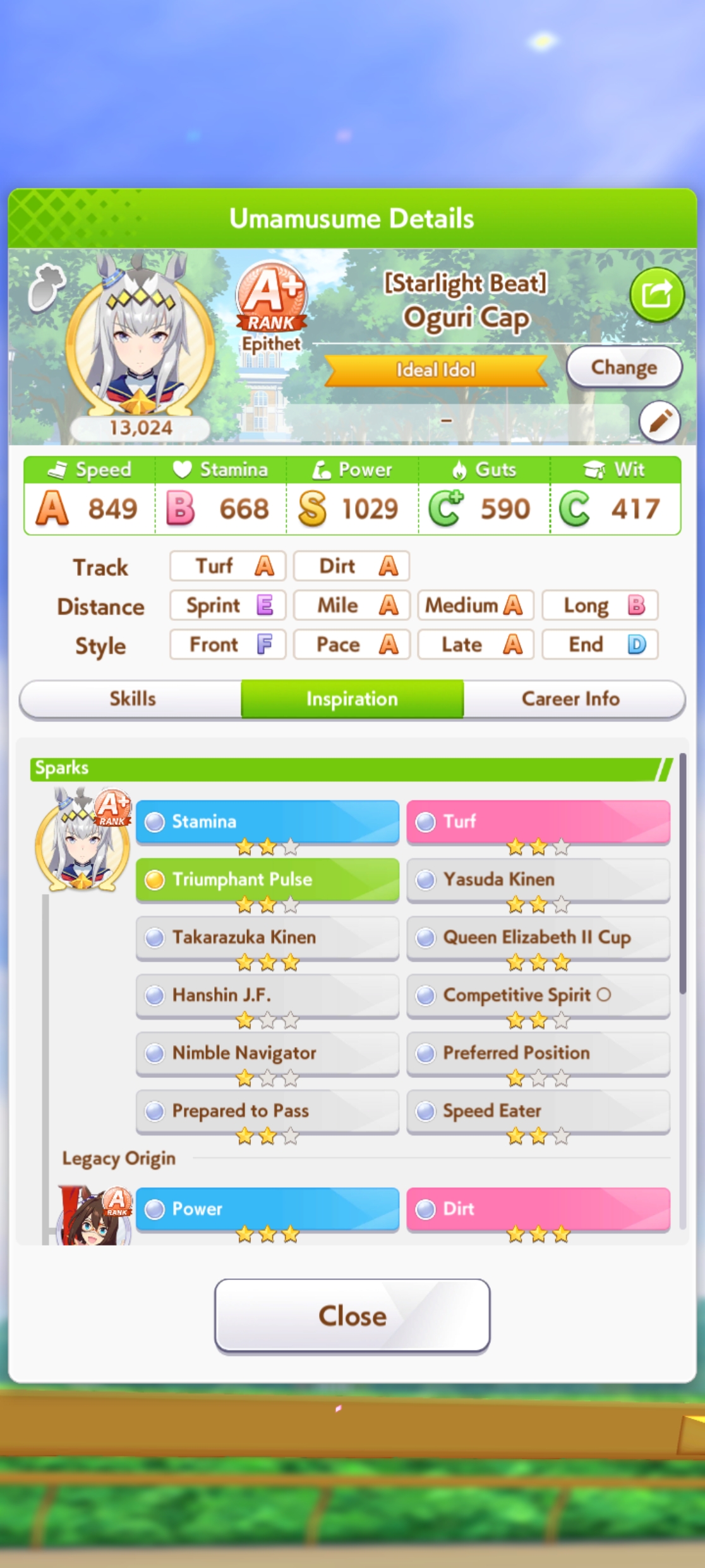 Well I forgot about the first race in Taiki's special event so I missed out on 120 free stats and 2 head-on hints but I think this might be good enough to contend in Capricorn anyway... what do you guys think?