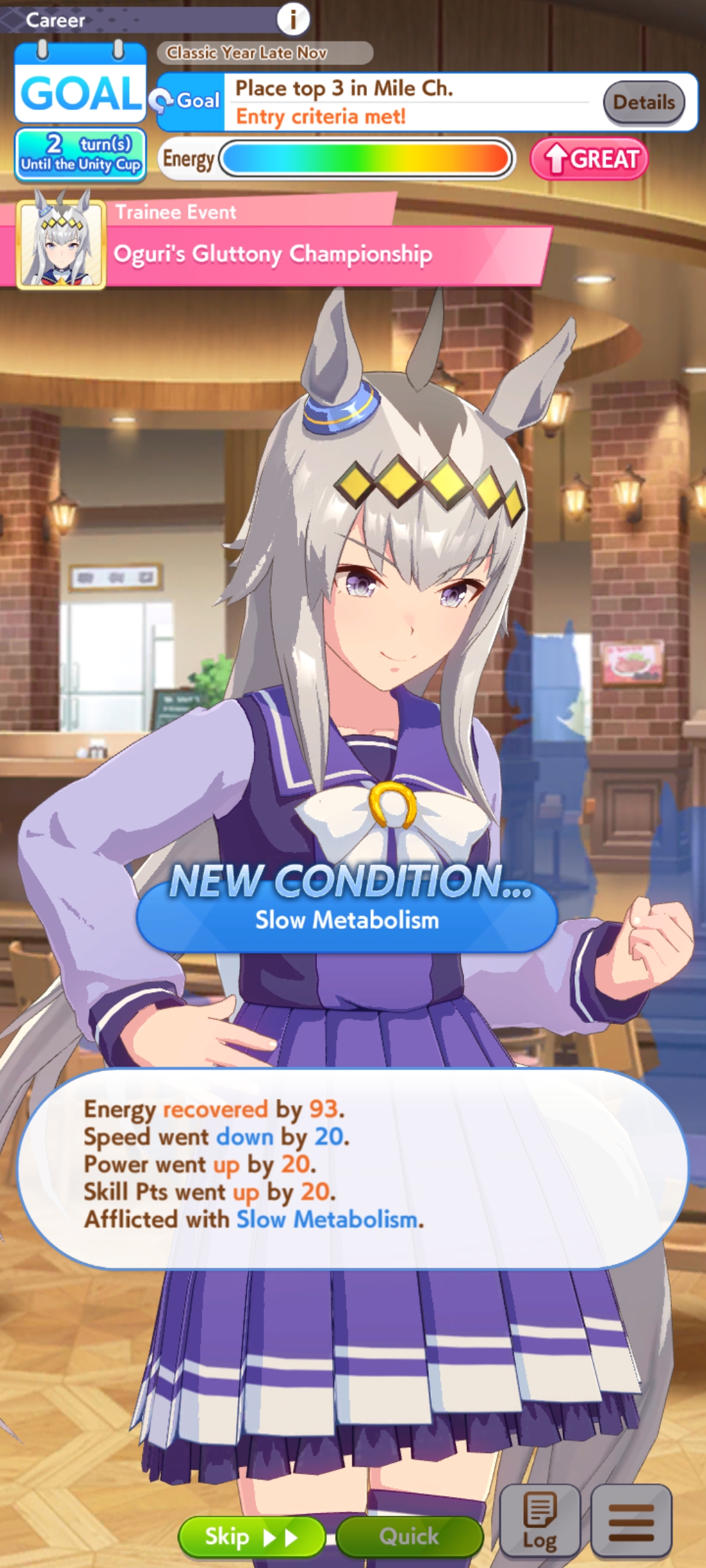 >>556722297I didn't watch but I can only think of two scenarios: Either mummy procced or the speed was stupidly high around end of classic with a high wit. I remember finishing classic summer with 700+ speed. Granted it wasn't summer but regular Maru so it might have been red shift doing the heavy lifting.