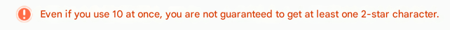 >>556736930It's literally a thing in BA, make of this what you will.>>556737178Is that red text talking about 10 pulls adding the guaranteed 2 star? That's pretty neat if true, something they should add early for QoL purposes, but I can see them not doing it as it screws with the rolls.