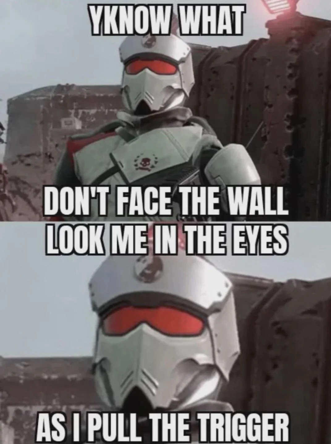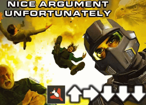 >>556731175suicide (and any attempt to aim at yourself with weapons) is illegal and Helldivers are good boys who would never break the law even and especially when they're about to die