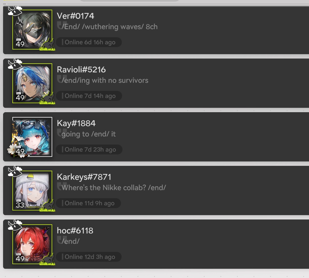 >F2P>Game's given me 9 WulfgardsEndfield please I already have him at max pot you're giving me bricks please send me chens and pans instead