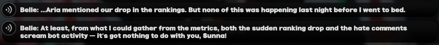 the story was okay and all but i hate the way they dripfeed characters these days. they basically teased five characters, cissia, severian, promeia, and the two girls at the end, and aside from severian they were there just to show up so we can see what they look and sound like and then disappear. now whenever they're ready for release they'll just show up in a story that feels like it's already halfway over when we're inserted into it and they'll act like they've always known the proxy. they should just introduce these characters normally at the start of an arc and let them develop a full story