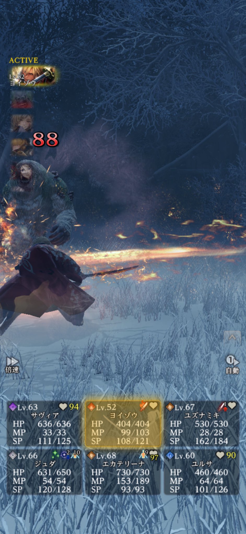 >>557163880Feels like a superboss. After a few turns he applies a speed boost 3 buffs deep that lets him take 3 actions every time one of your characters acts.