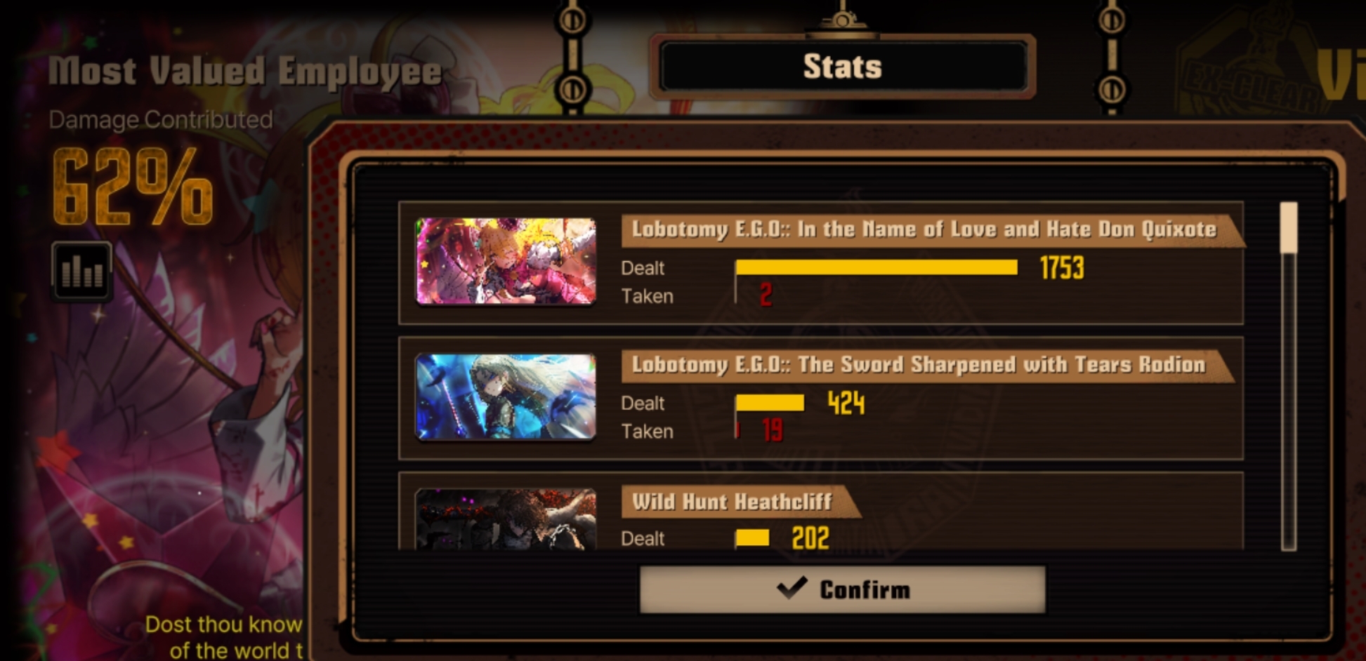 Previous thread: >>556707190Season 7 - Kumo no Ito2025.12.31 — Mirror Dungeon #6 - Mirror of Immortality2025.07.03 —Refraction Railway Line 5 - Merry Go Round2025.02.20 —>Current Events>Upcoming Extractions>Current Extractions2026.02.05 — 2026.02.19[000] The House of Spiders:The PinkyApprentice Sinclair[000] Lobotomy E.G.O:: LAMP Gregor2026.02.05 — 2026.02.19Target Extraction: [ Faust ] ID & E.G.O>FAQs! This game is directly tied to the setting of Project Moon's previous games, Lobotomy Corporation and Library of Ruina, and is set after both. Expect spoilers for those games in this thread.! The tutorial is important.>Download linksAppStore: https://apps.apple.com/app/limbus-company/id6444112366Google Play: https://play.google.com/store/apps/details?id=com.ProjectMoon.LimbusCompanySteam: https://store.steampowered.com/app/1973530/Limbus_Company/>Other linksOfficial twitter: https://twitter.com/limbuscompany_bOfficial youtube: https://www.youtube.com/@ProjectMoonOfficialOfficial site: https://limbuscompany.global>Required readinghttps://mega.nz/folder/xosDkZ5Z#Wt4JpUt5Bb2XG77pxuuXpw>For all your EGO and Sinner info needshttps://limbus.kusoge.xyz/https://gll-fun.com/en/>Useful resources and a general guidehttps://rentry.org/lcg_resourceshttps://rentry.org/lcbguidehttps://rentry.org/LCB_optimal_grind_guidehttps://lcb-days-since-last-id.carrd.co/https://lcb-days-since-last-ego.carrd.co/>Countdownhttps://lcbcountdown.carrd.co/