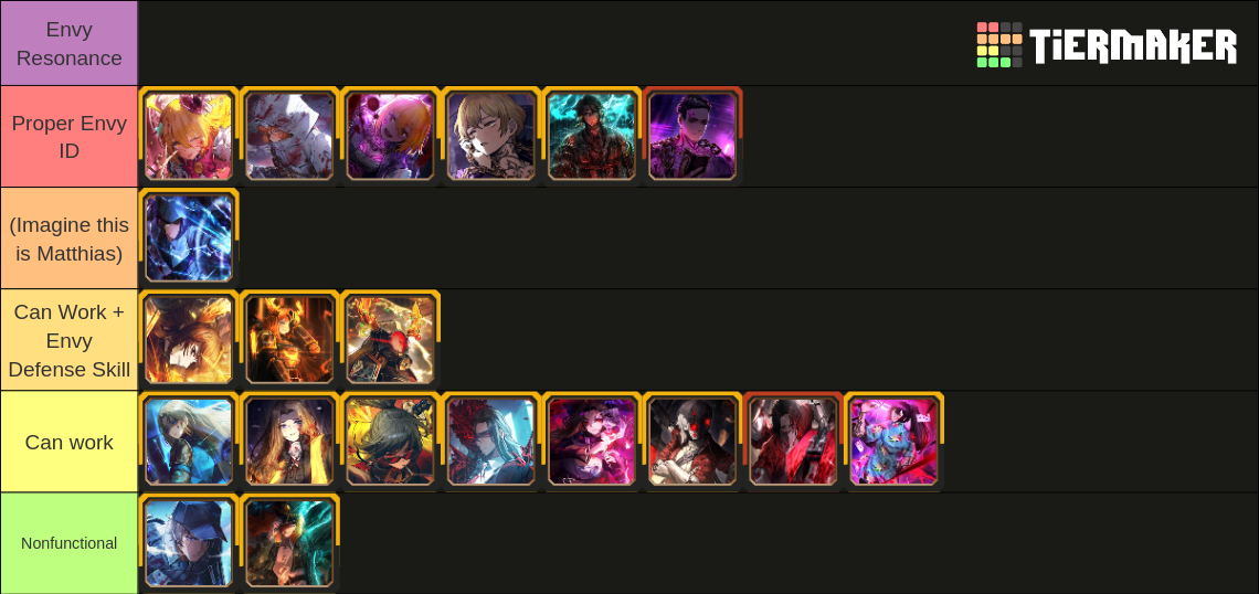 >>556751020I do think he looks cool at least, but I usually want a few of the guys he gets to go to a sinner with a little more personality for an interesting take on the Sinner who gets themMeursault IDs aren't really ever a departure from normal Meur because hes (rightfully) super consistent personality wise. But like with Lei Heng, I would've liked a more shit-talking, gungho sinner than Meursault to get that id, I think that makes sense at least