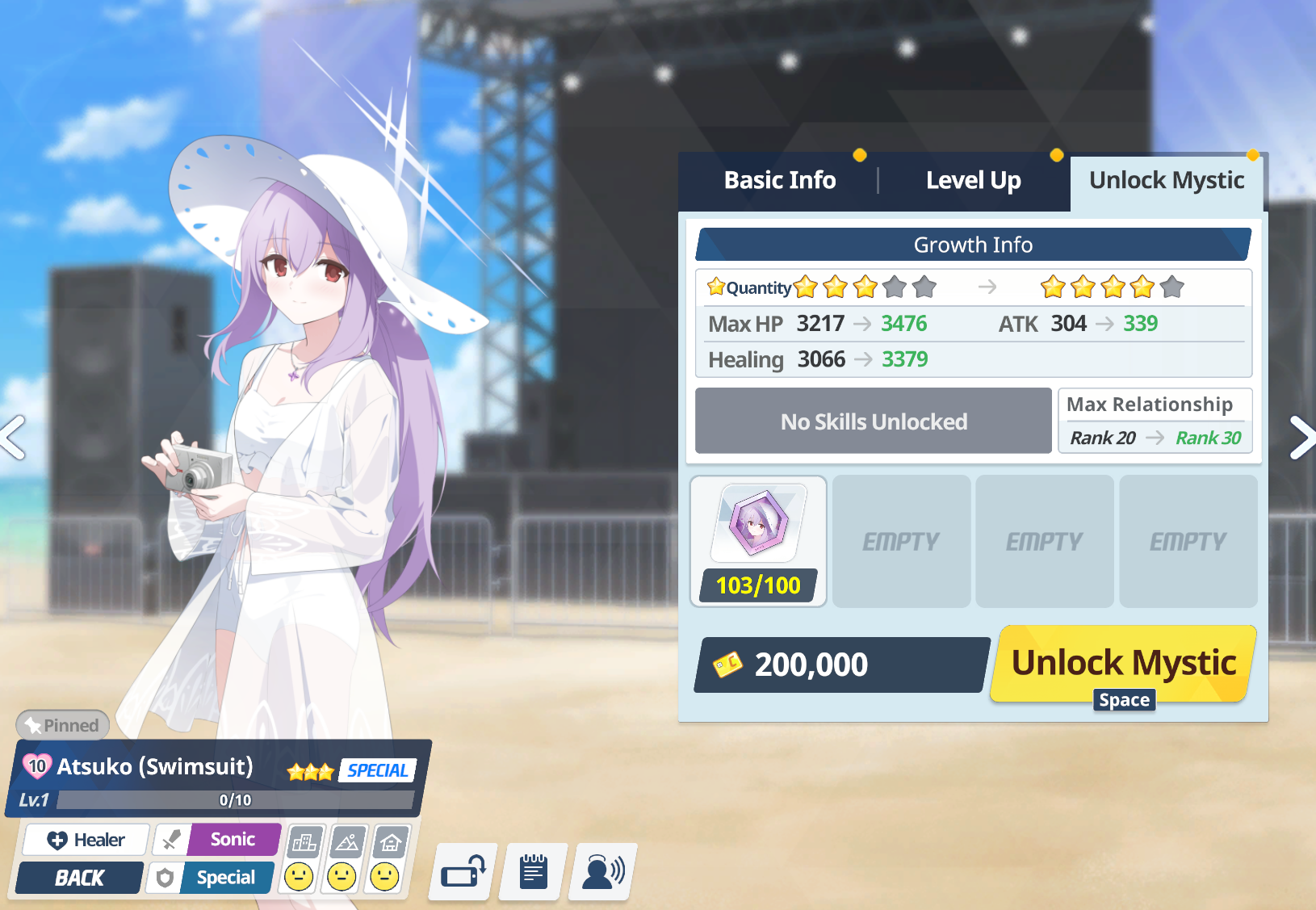 Atsuko status? Went from 0 to 53/120.