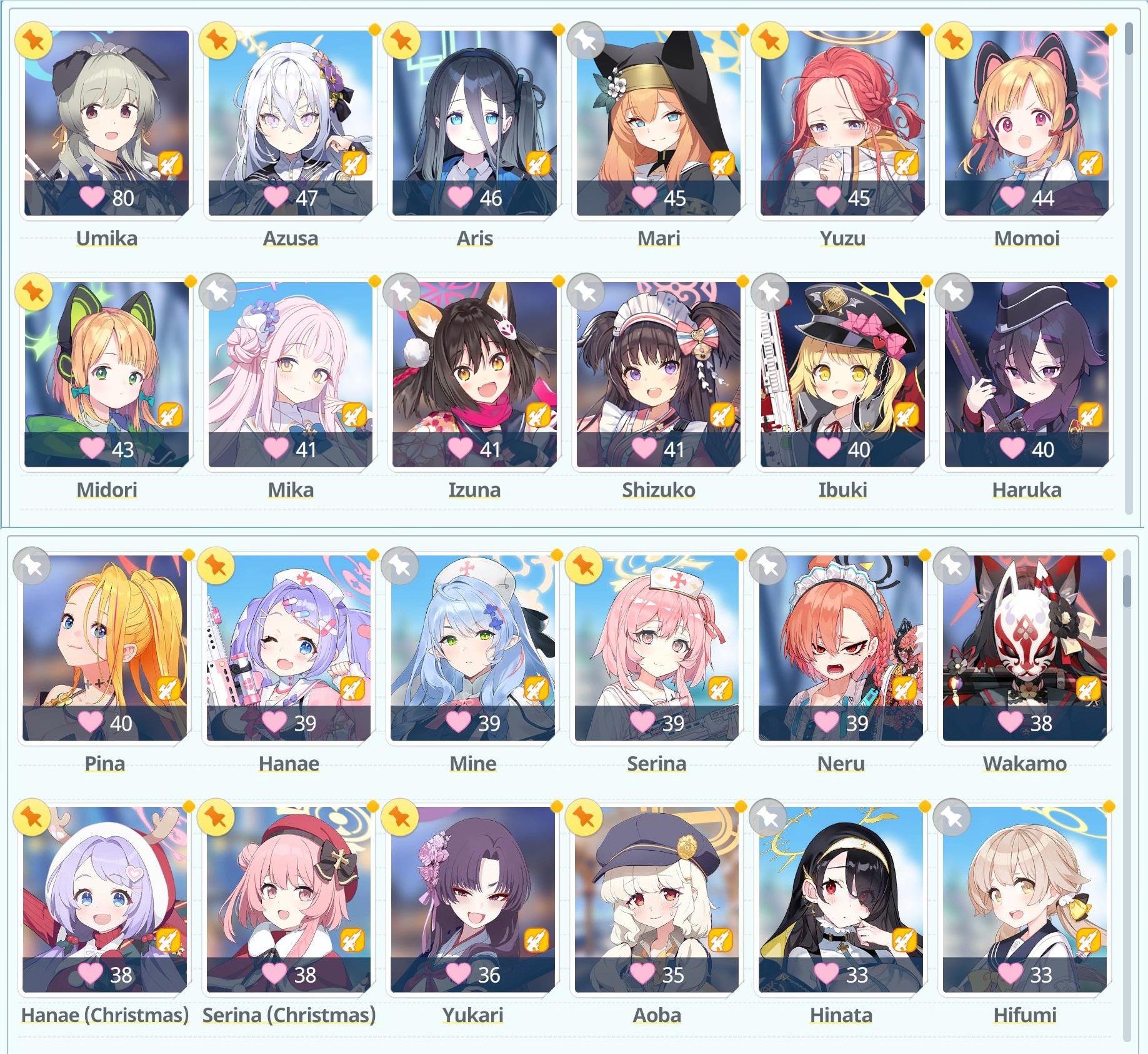 >>556770734Hikari seems to visit my cafe a lot more often than her sister so she's slightly above (I'll need to fix that at some point but I'm fully committed to the gamers for the time being)
