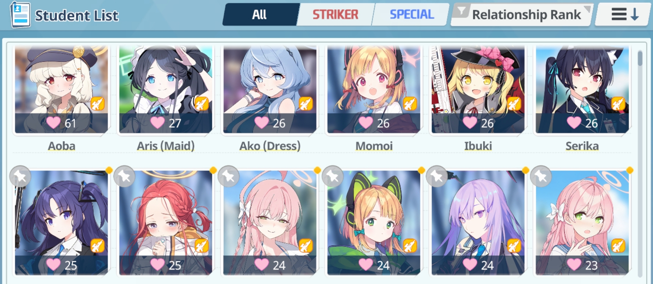 >>556776953Am I supposed to be leveling affection for students I'm not infatuated with?