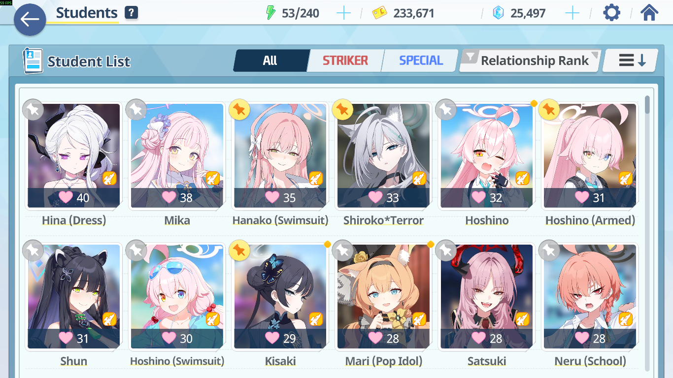 Atsuko status? Went from 0 to 53/120.
