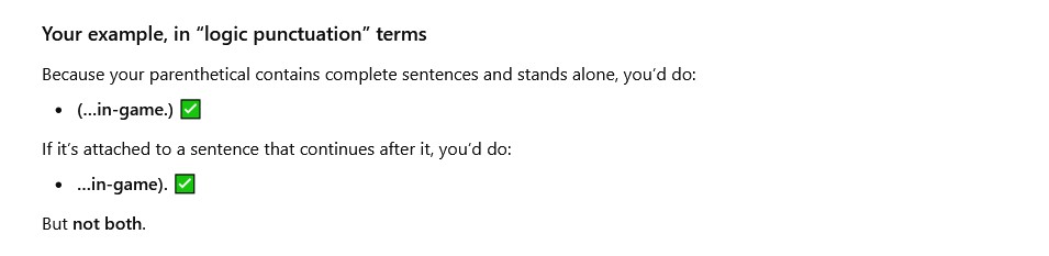 >>556784850how else are you going to write? the sentence doesn't end if the period is inside the parentheses lol. it's the only way that makes logical sense.