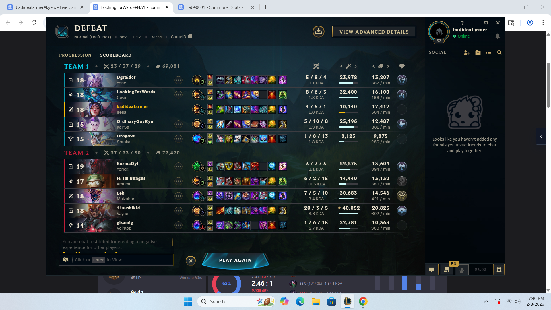 Yooo dont have too much fun bro. :)They trying to climb up in Aram Mayhem get that LP hit that Rank 1 challanger respect respect wp