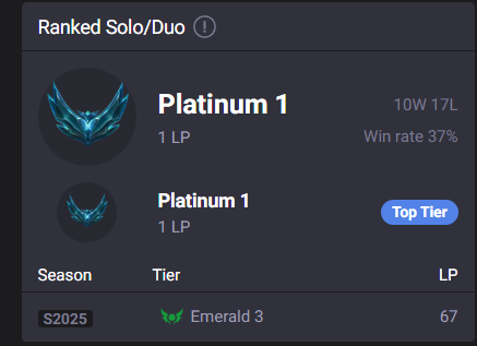>>556788287this keeps happening to me whenever I get within 1-2 wins from promoting to Emerald