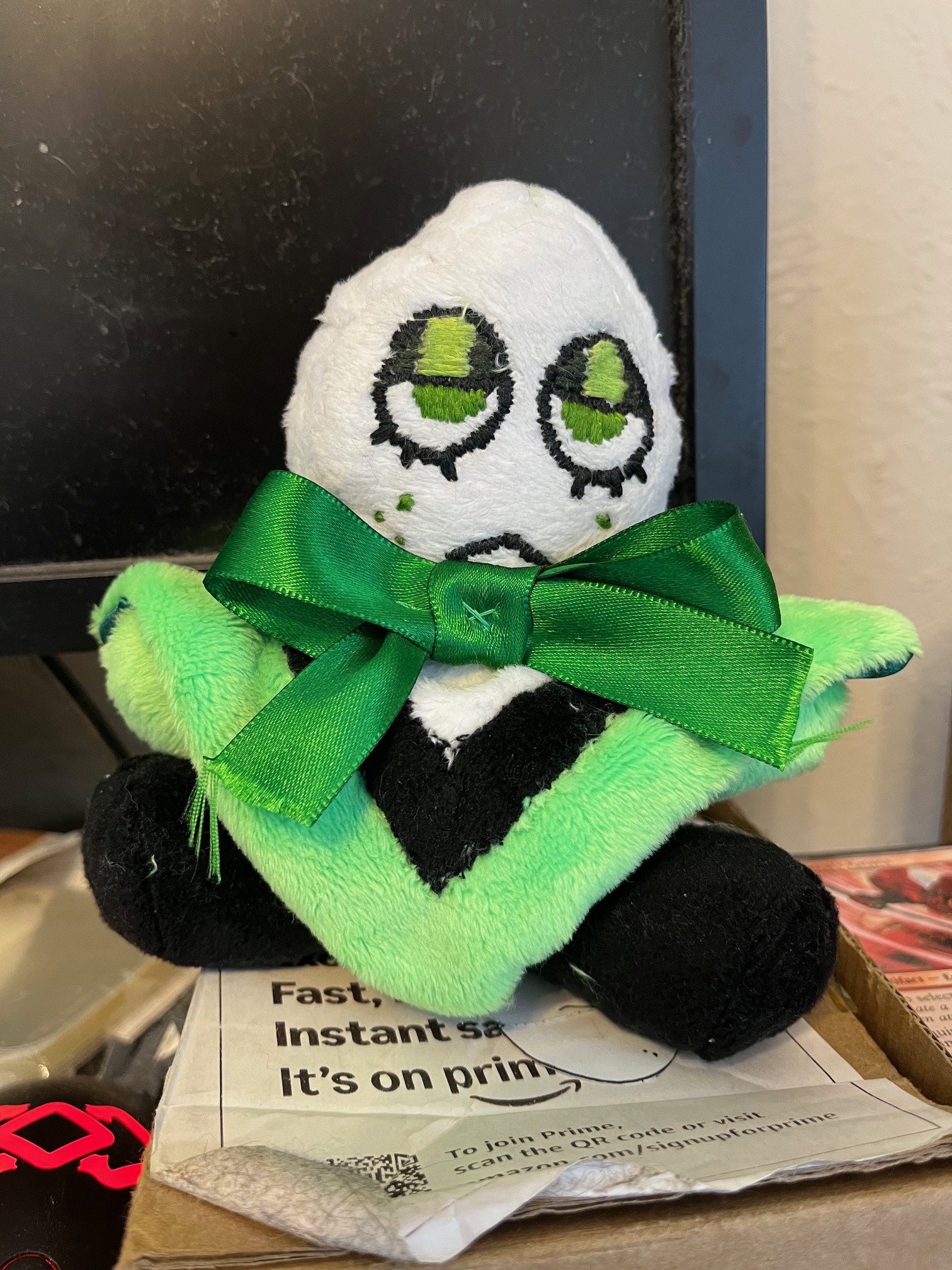 >>556773785He's one of those clear dice with a little cat inside idk