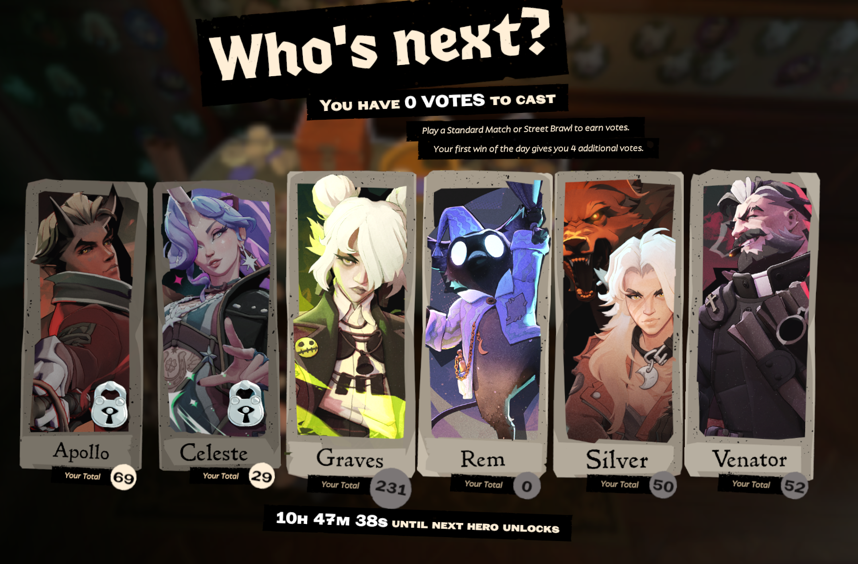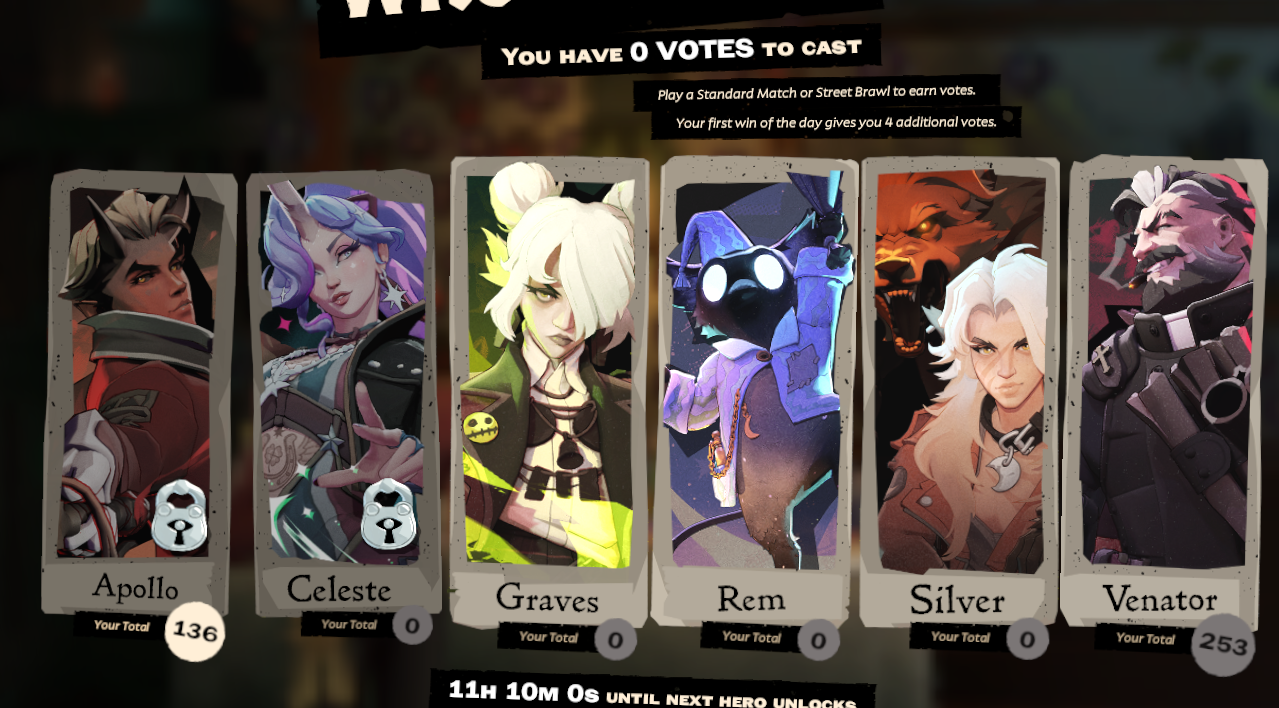personally, i want the last two heroes to mix up my standard games even more. Rem and Graves just straight up dominate lowpiss right now and I hope one of the two can solve the problem. match making though is always random pairing