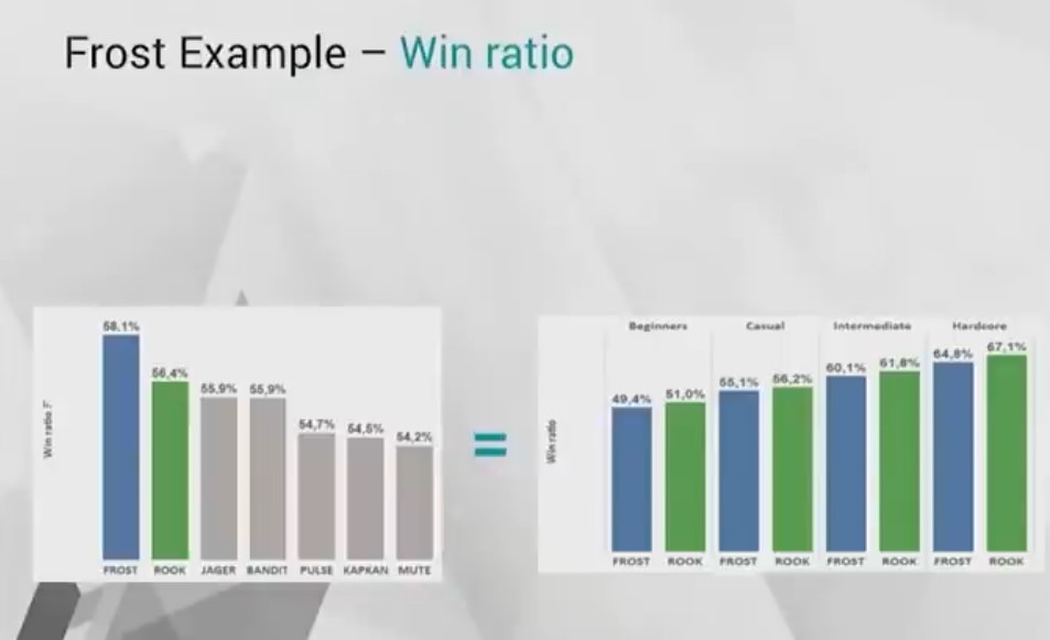>dev effort should be in the direction of making that hero perform more evenly across skill levels