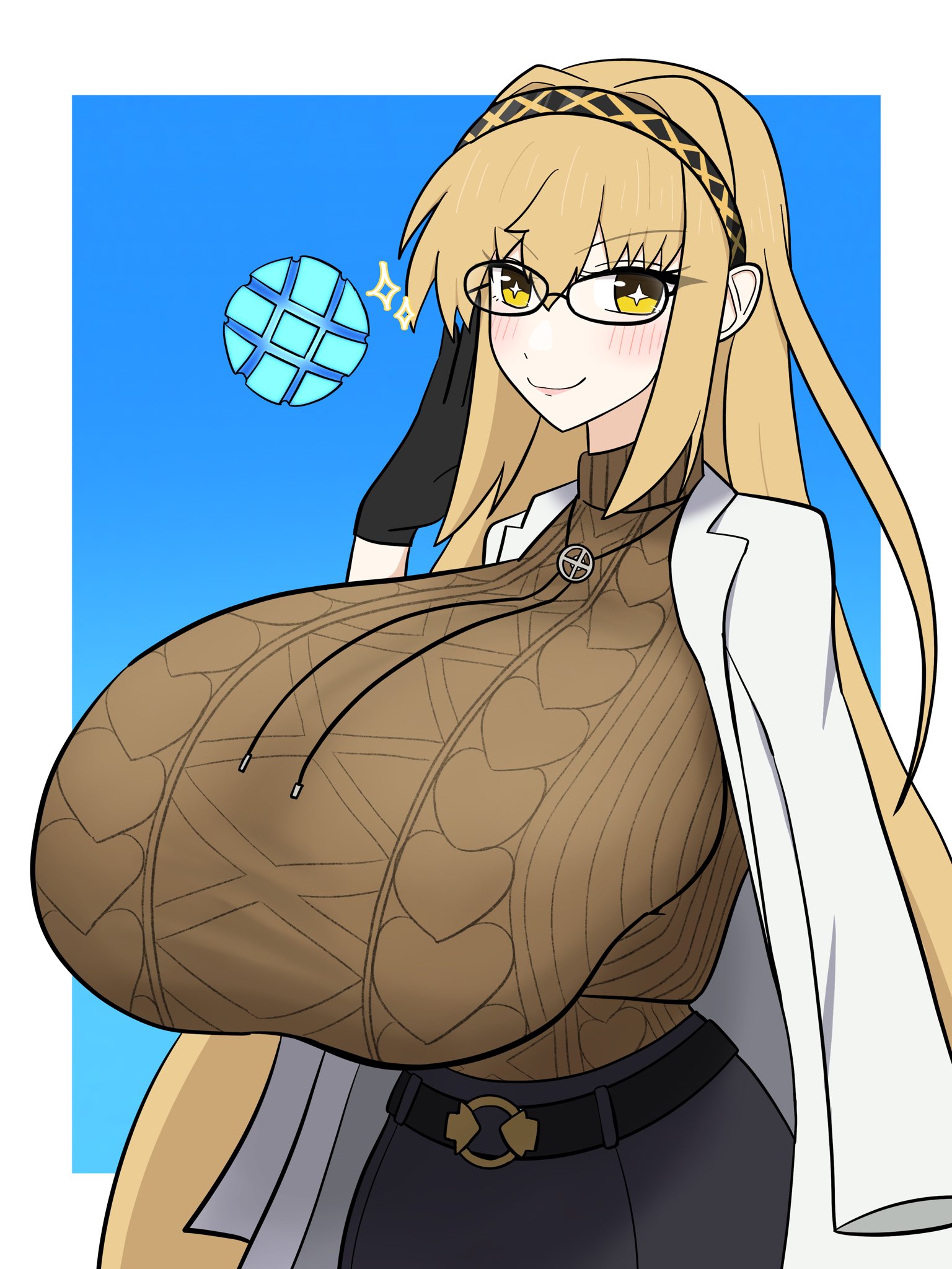 >>556795874boobs too balloony, elbows too pointy, splash hearts over the top, unnatural feet, shading is a bit funkyoverall I like it. one of the better waifus