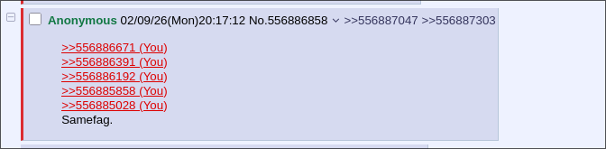 >>556886105Different poster. I've been lurking for a few minutes.