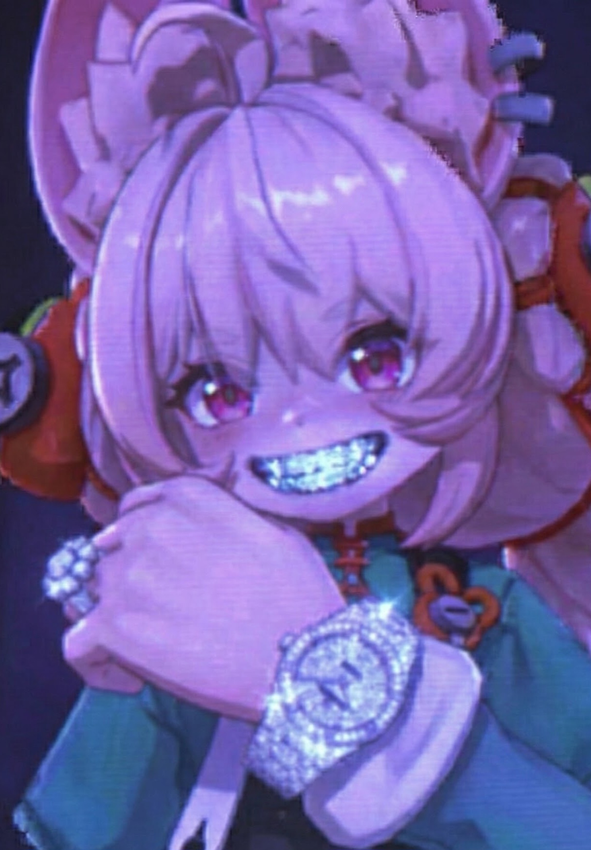 >>556858901I imagine this is the face she makes when someone posts "look at this anon" similar to when we post something like "look at this foof" on the interknot