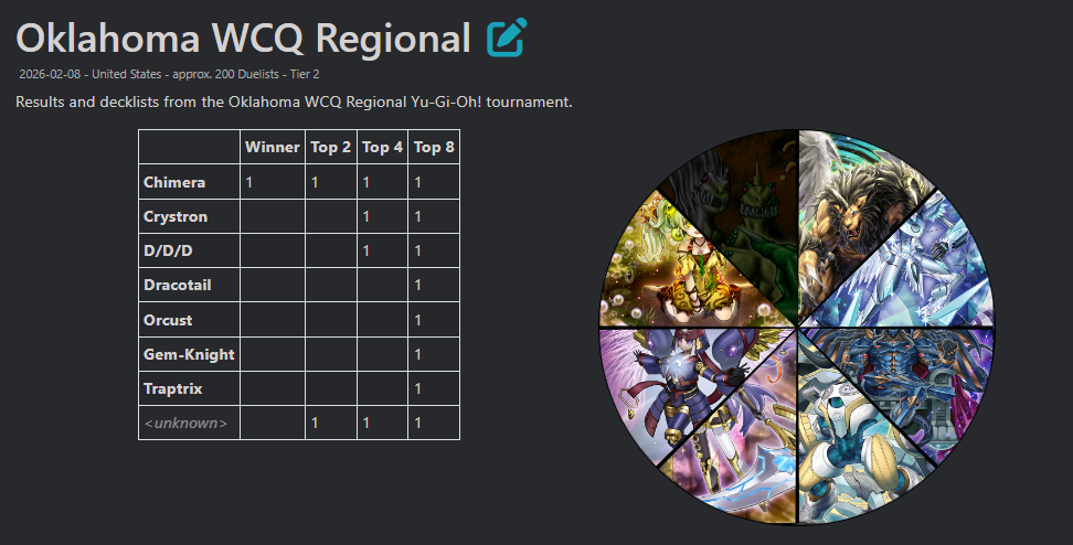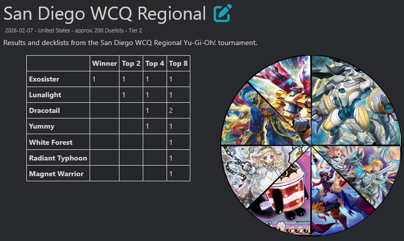 #6747 - Potential EditionPrevious: >>556705561>SimulatorsAutomated:●EDOPro (PC/Android): https://projectignis.github.io/download.html●Master Duel (Multi-plat): https://store.steampowered.com/app/1449850Manual:●Duelingbook (online): https://www.duelingbook.comTag: “/dng/” Password: “vidya”; on EDOPro, specify server.Genesys Duels: MR5, TCG, Custom Rules: No Links/Pend/EMZ/Pend Zones>LinksRulebook: https://www.yugioh-card.com/en/rulebook/Wiki: https://yugipedia.comProbability Calculator: https://yugioh.fyiStock Market: https://yugiohprices.comDatabase: https://www.db.yugioh-card.comMisc Info: https://www.formatlibrary.comBlog:https://yugiohblog.konami.com/Alt Format:https://www.yugioh-card.com/en/genesys/>BanlistsTCG: https://www.yugioh-card.com/en/limited/list_2026-02-02/ (Feb 2/Next List: TBA)OCG: https://yu-gi-oh.jp/news_detail.php?page=details&id=2406 (Jan 1/Next List: April 1)>DecklistsOCG: https://roadoftheking.com https://tonamel.com/competitions?game=yugioh_ocgTCG: https://ygoprodeck.com/category/decks/tournament-meta-decks>NewsJP: https://yugioh-starlight.comEN: https://ygorganization.com>Upcoming SetsOCG:●LIMIT OVER COLLECTION -THE PROTAGONISTS- (Feb 28)●Valuable Book EX6 (Mar 19)●LIMIT OVER COLLECTION -THE RIVALS- (Mar 20)●Chaos Origin (Apr 25)●REVOLUTION BOOSTER -Toon Witchcraft (May 30)TCG:●Burst Protocol (Feb 7)●Maze of Muertos (Feb 20)●Legendary Modern Decks 2026 (Mar 13)●Rarity Collection 5 (Apr 10)>Events● /dng/ Free Neptune Tournament R (Feb 15, 1930 UTC):https://challonge.com/dngfntr