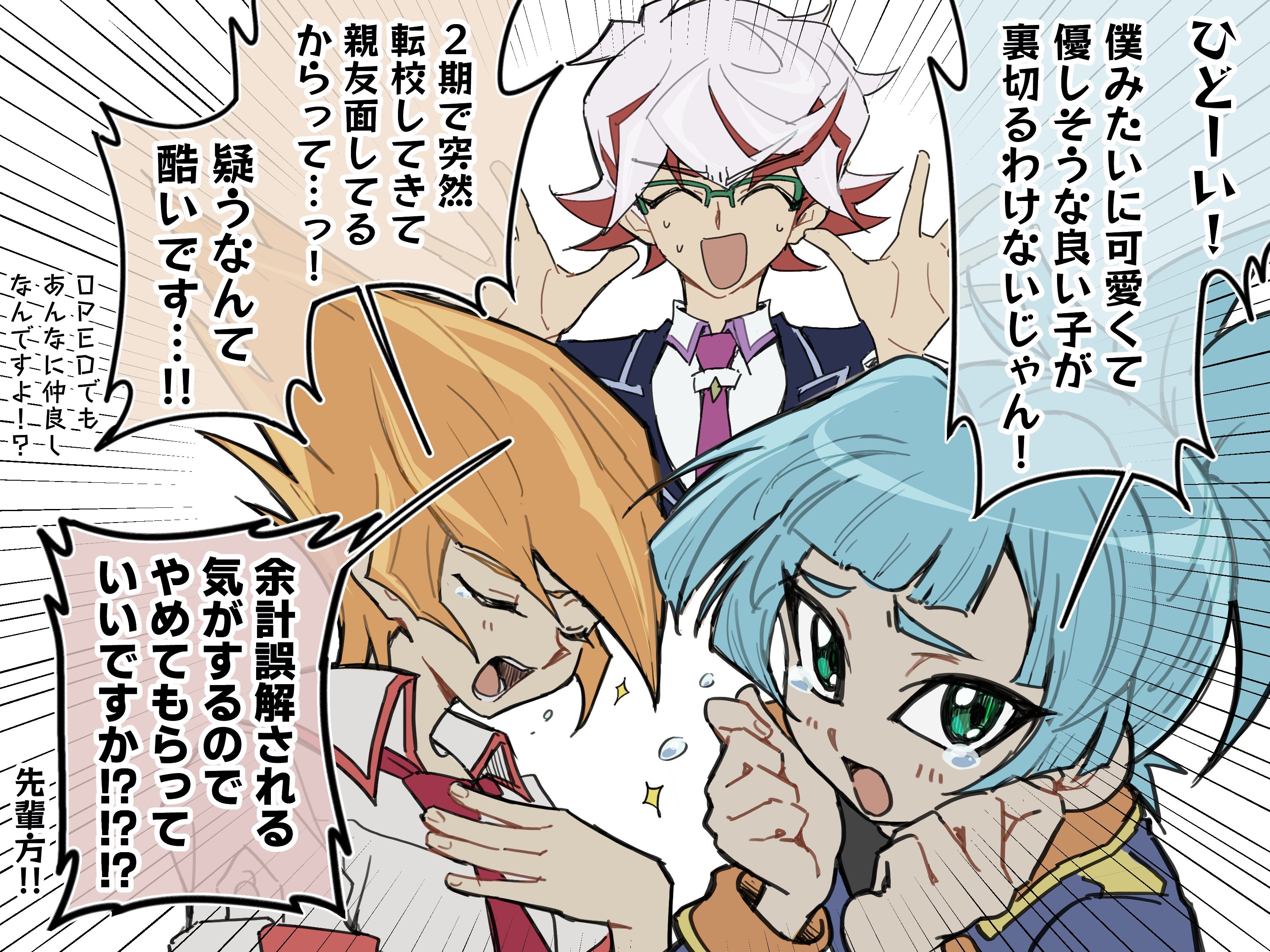 >>556893778The Link Vrains celebrities are just a holdover from the original premise of Vrains where Yusaku was going to be a shy boy learning how to get out into the world and it shows early. After Go and Blue Angel are introduced, they're put through humiliation ritual after humiliation ritual because they cannot adapt to the new cyberterroism plot.