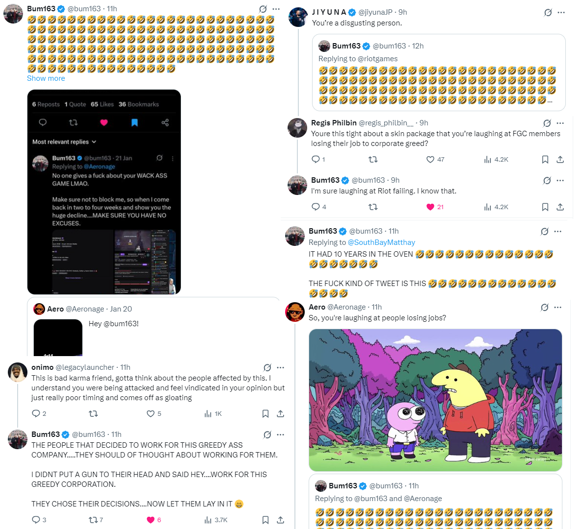 >>556914751I had to read some idiot blaming the game restarting development multiple times on "higher ups". Yeah bro I'm sure it was the nigga in a suit that ran to the devs and told them to make the game a tag fighterlook at this shit https://x.com/DeadwardFGC/status/2020958232198643971people talk shit about vrubers but these niggers are fucking parasocial with fucking fg players https://x.com/KhalilTheDegen/status/2020977397164802367>Riot is an extremely ruthless company, they've been known to operate like this in the past. really nigga