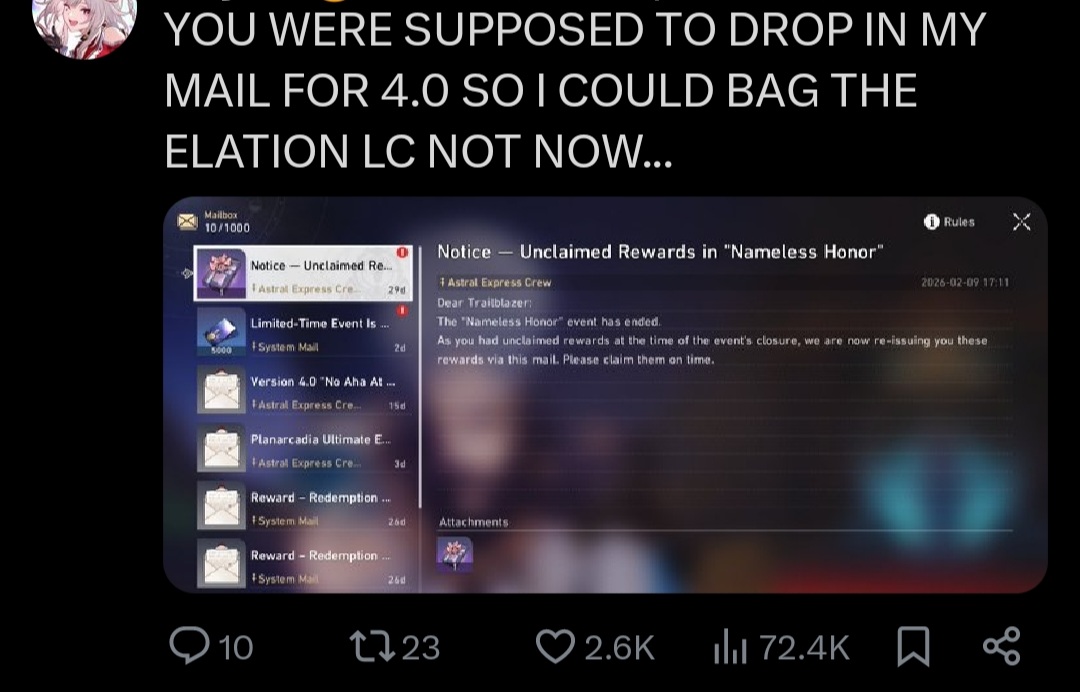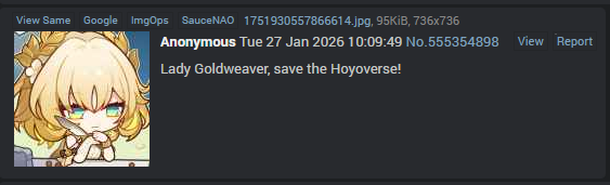 Previous: >>556850774>Version 4.0 "No Aha At Full Moon" Special Programhttps://www.youtube.com/watch?v=JwD3wN33R_Ahttps://www.youtube.com/watch?v=r2bxxcYK9qo>Download - https://hsr.hoyoverse.com/en-us/home>4.0 Preview Page - https://act.hoyoverse.com/sr/event/e20260206version-nwlbwa/index.html>Version 4.0 Trailer: "No Aha at Full Moon"https://www.youtube.com/watch?v=2hH0hILcWPshttps://www.youtube.com/watch?v=EMT6GmhDiBk>Improv Tour Trailer: "Binge It All! The Truth After the Battle of Irontomb!"https://www.youtube.com/watch?v=VsrABLcQQvchttps://www.youtube.com/watch?v=FOj68wLqj7A>Myriad Celestia Trailer: "Anti-Destruction Alliance"https://www.youtube.com/watch?v=ZwnE5o7_gzAhttps://www.youtube.com/watch?v=_2YD35PJOmU>Improv Tour Trailer: "Beyond Weal and Woe"https://www.youtube.com/watch?v=kmzwoua4dUkhttps://www.youtube.com/watch?v=cKxHKZaEURk>Current Character Banners: Aglaea, Sunday + Tingyun, Yukong, Dan Heng - https://www.hoyolab.com/article/43491055>New Drip Marketing:>Ashveil (5* Lightning Hunt) - https://www.hoyolab.com/article/43666646>Redeemable Codes - https://hsr.hoyoverse.com/giftCB2RUY7Y2P9BSTARRAILGIFT>/hsrg/ Tools & Resourceshttps://rentry.org/hsrg-resources-14>/hsrg/ Thread Templatehttps://rentry.org/hsrg-thread-template-14