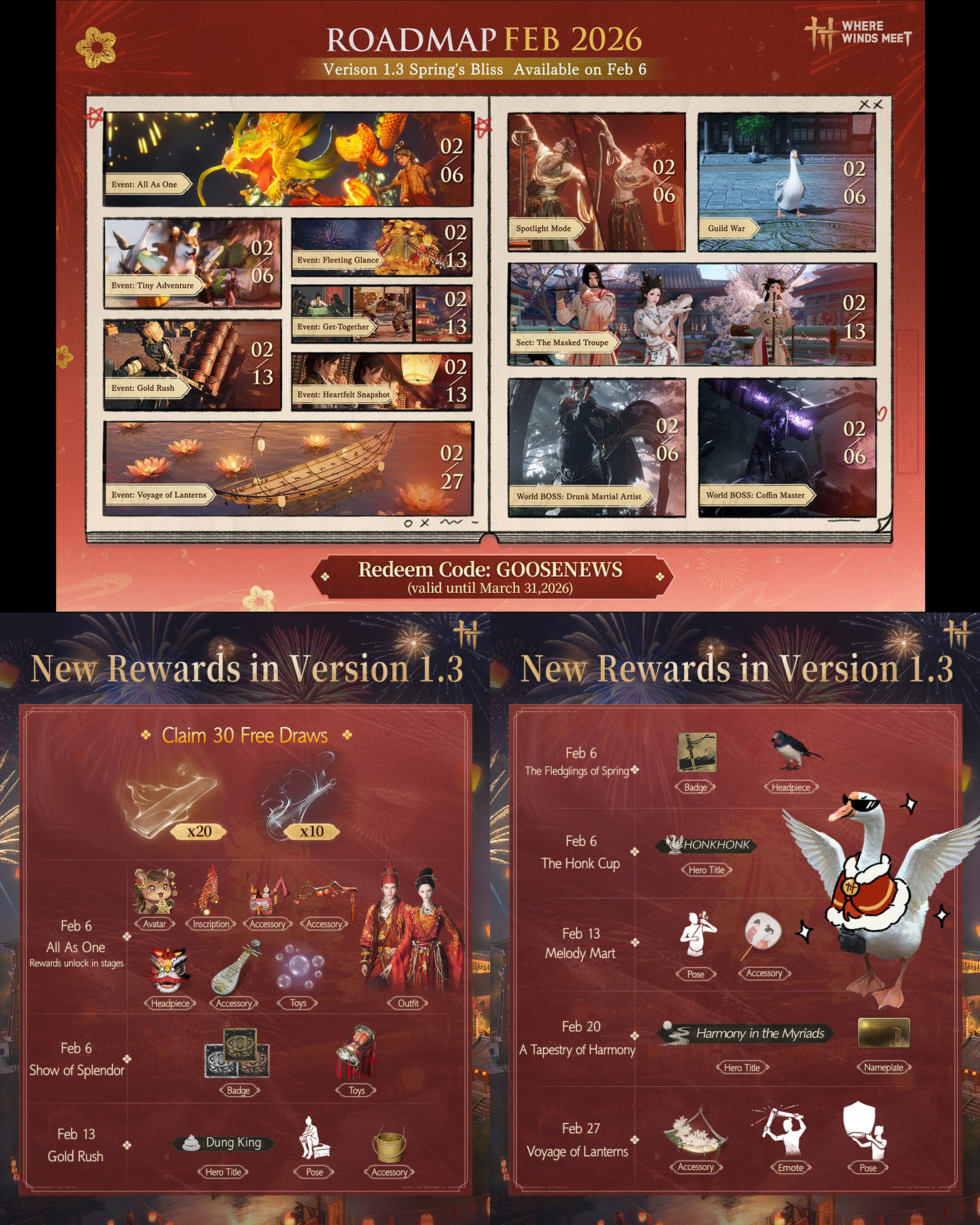 (You) EditionPrevious Realm: >>556725924February Roadmap:https://x.com/WhereWindsMeet_/status/2017421324109680685Where Winds Meet is an epic Wuxia open-world action-adventure RPG set in ancient China at the tenth century. Players will assume the role of a young sword master as they embark on a journey to uncover the mysteries of their own identity. Let the wind carry your legend on an epic journey to the East!Download Now:PS Store: https://playstation.com/games/where-winds-meet/Steam: https://store.steampowered.com/app/3564740/Where_Winds_Meet/Official PC Launcher: https://wherewindsmeetgame.com/news/official/GlobalLaunch/InstallGuide.htmlWebsite: https://www.wherewindsmeetgame.com/Maps:Chinese: https://map.17173.com/yysls/maps/qingheEnglish (global): https://mapgenie.io/where-winds-meet/maps/worldNeed help figuring out dailies and weeklies?WWM Helper: https://besaids.github.io/WWM-Helper/home/vg/ Guilds:>Name: Sage>ID: 10001992>Region: NA32/100>Name: Heavenly Sage>ID: 10036681>Region: NA74/100>Name: NoFunAllowed>ID: 10149590>Region: EU71/100Search by ID and then send a message to the guild leaders saying you're from /vg/, or put wwmg or vg in your profile so a vice leader can get to you quicker.4chan Group Chat:Social > Friend > Group Chat > Enter the Code 100008774Codes:Settings > Other > Exchange CodeWWM251115WWMDEVTALKYYSLSTIBtf33hxjmjcDEVLOG2601GOOSENEWS