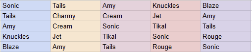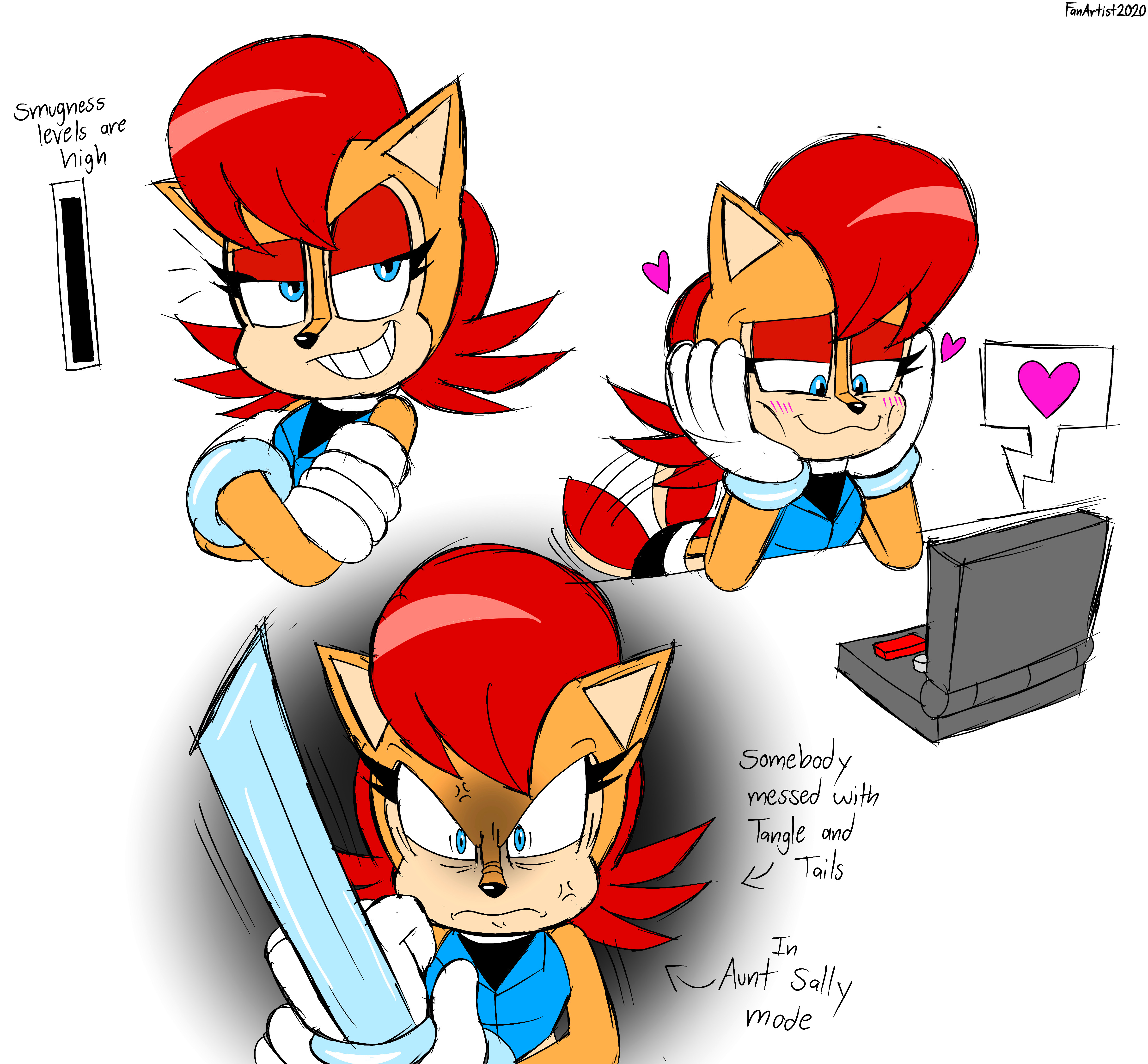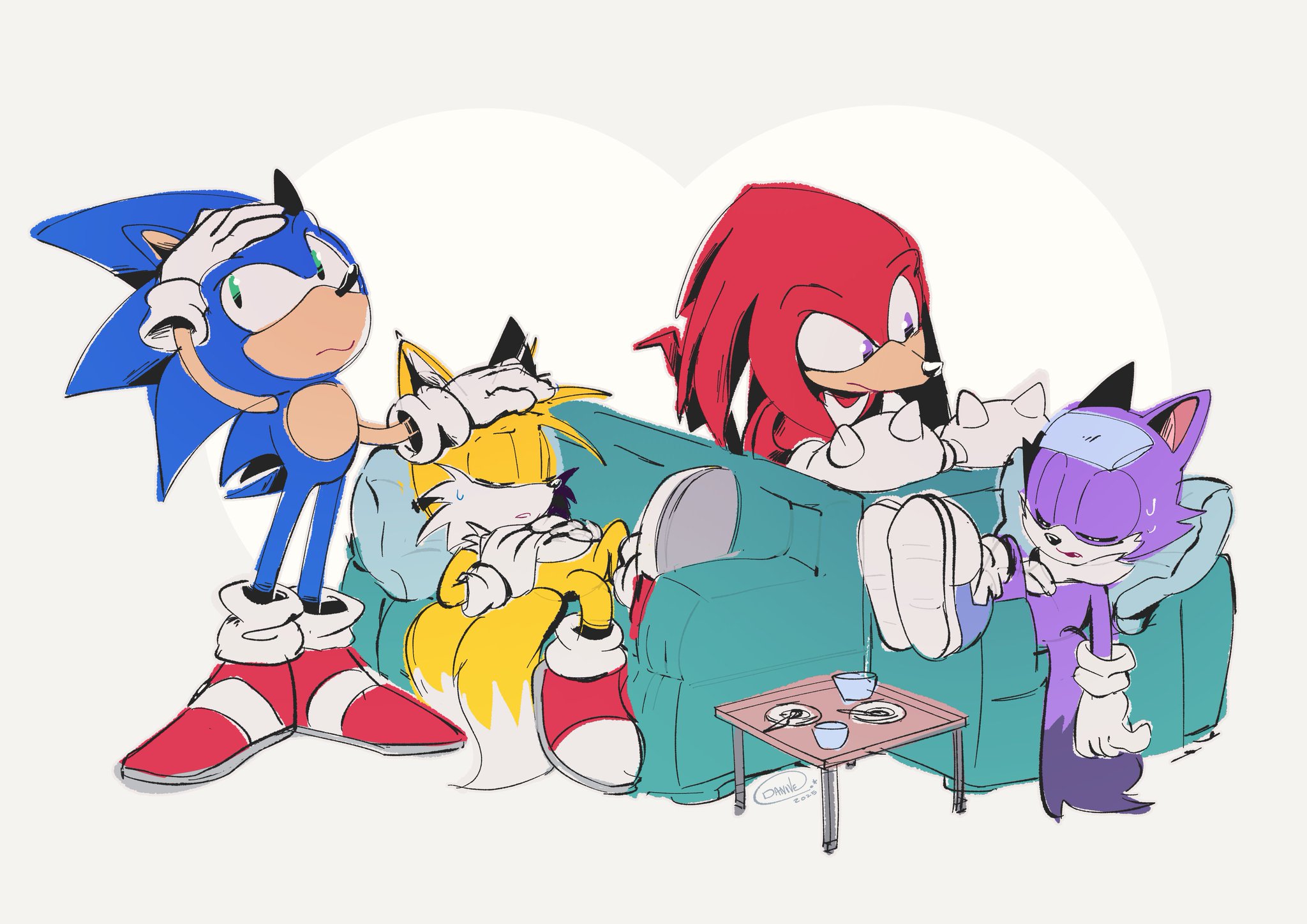 Someone once criticized how Tails ends up written like Sally in certain instances like the Meta Era or the manga or whatever, and that's because Tails is A) "Boy Blaze" apparently, andB) a younger version of Knuckles, at the same time. Tails is a contrast to Sonic as his "partner". Therefore Knuckles, the Anti-Sonic, takes aspects of Tails and heightens them -against- Sonic, and Blaze has the same contrasting elements of both to assert her as the direct opposite inverse of Sonic. Tails, Knuckles and Blaze all have roots in being socially withdrawn or naive introverts, for example.