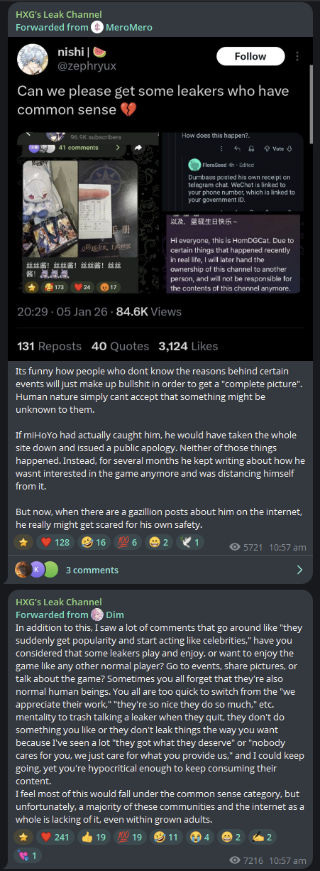 >>556912007Most people are in this for the attention at least as much as for the actual leaking. I know it's grim. But just look at how Nintendo console hacking in the 3DS era worked. Mostly clout, little actual delivering.