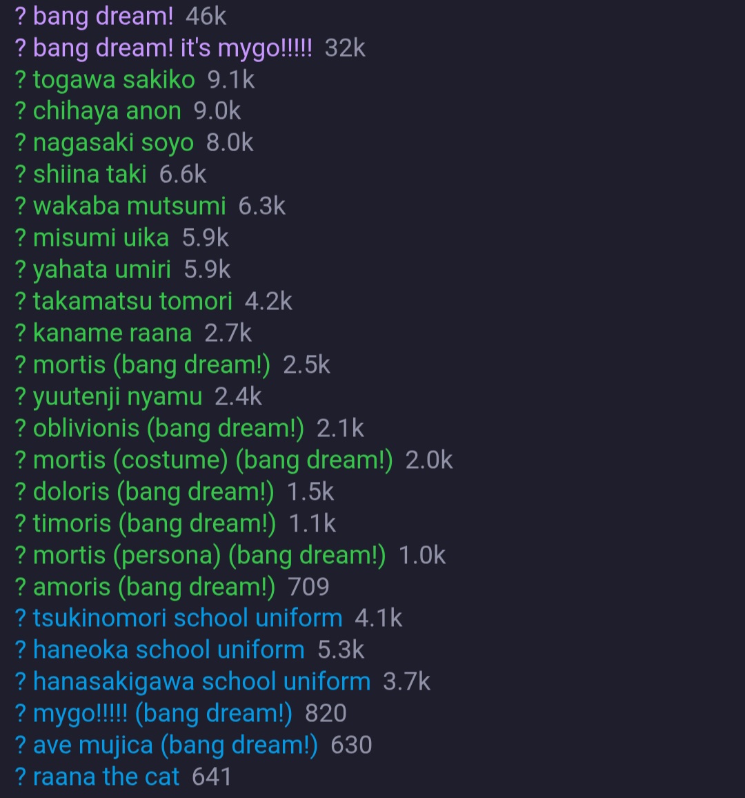 >466 rolls>2 Sakiko>3 Uikalmao I give up