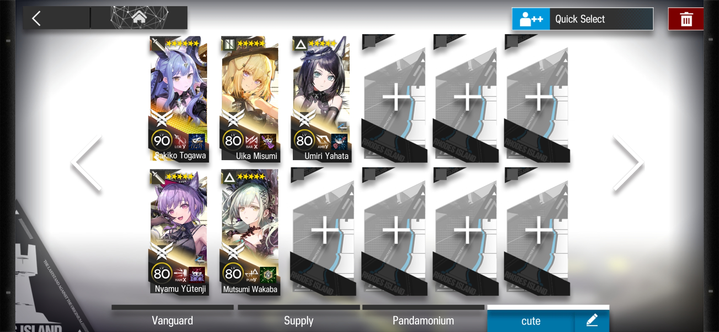 >really like Mutsumi>can just use her as a meatshield for Sakiko>Umiri in front of Mutsumi for more range + CC>Uika around them for heals and buffsWhat do you do with Nyamu though?